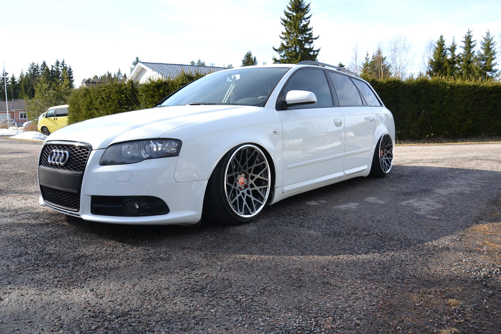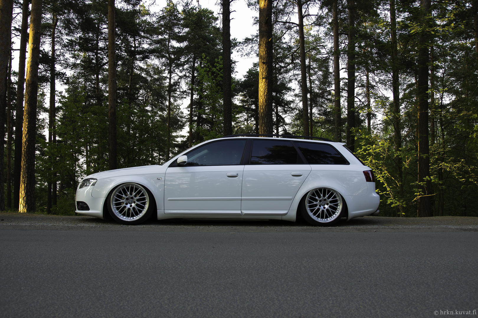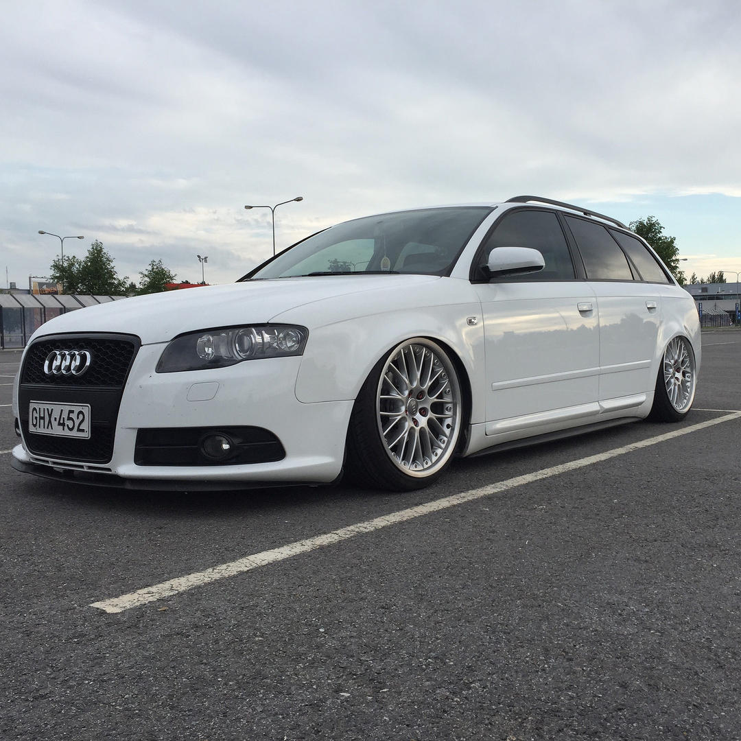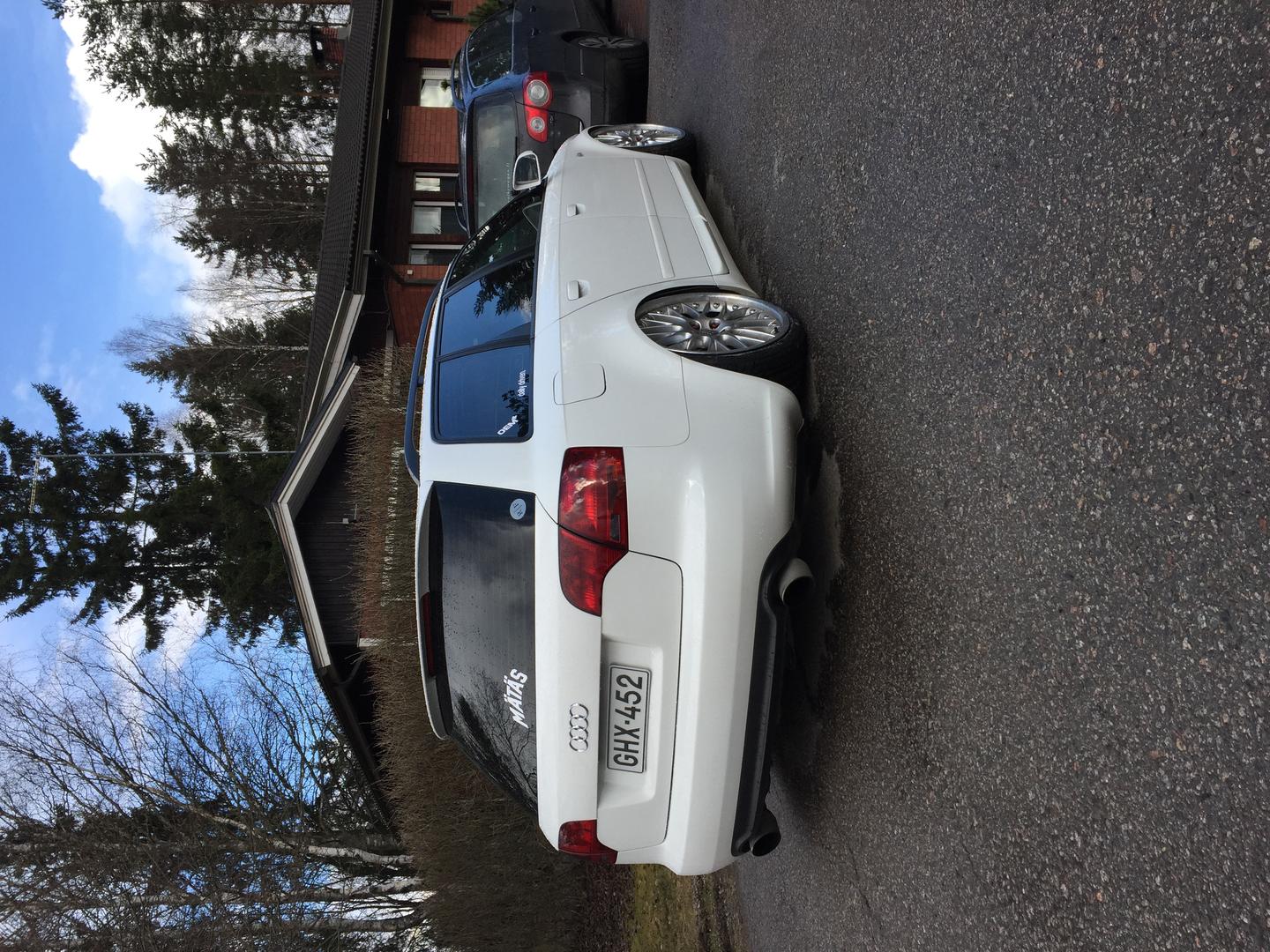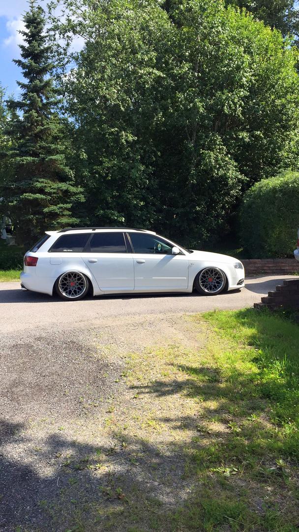 Pientä päivitystä taas Rotiformeja odotellessa. Audi kävi myllytettävänä tuossa ennen juhannusta, jolla saatiin kaikki talven aikana kertyneet pesunaarmut jne pois. Taidettu ajaa Laakkosella talvella harjakoneen läpi... Lisäksi keulille tuli perinteikäs cupralippa ja sivuille helmalinjaa madaltamaan CSR:n sivuhelmat. Seuraavaksi olis tarkotus hoidella toi etupää, eli tukivarsille tekemään lisää tilaa. Fitted Festiin olis sit suunnitelmana rullailla Roteilla ja keulakin alhaalla. Kakkikseenkin pitäis tässä jomit tempasta alle ja selvitellä pientä käyntihäiriötä, eipähän ole vapaa-ajan tekemisestä pulaa. :D