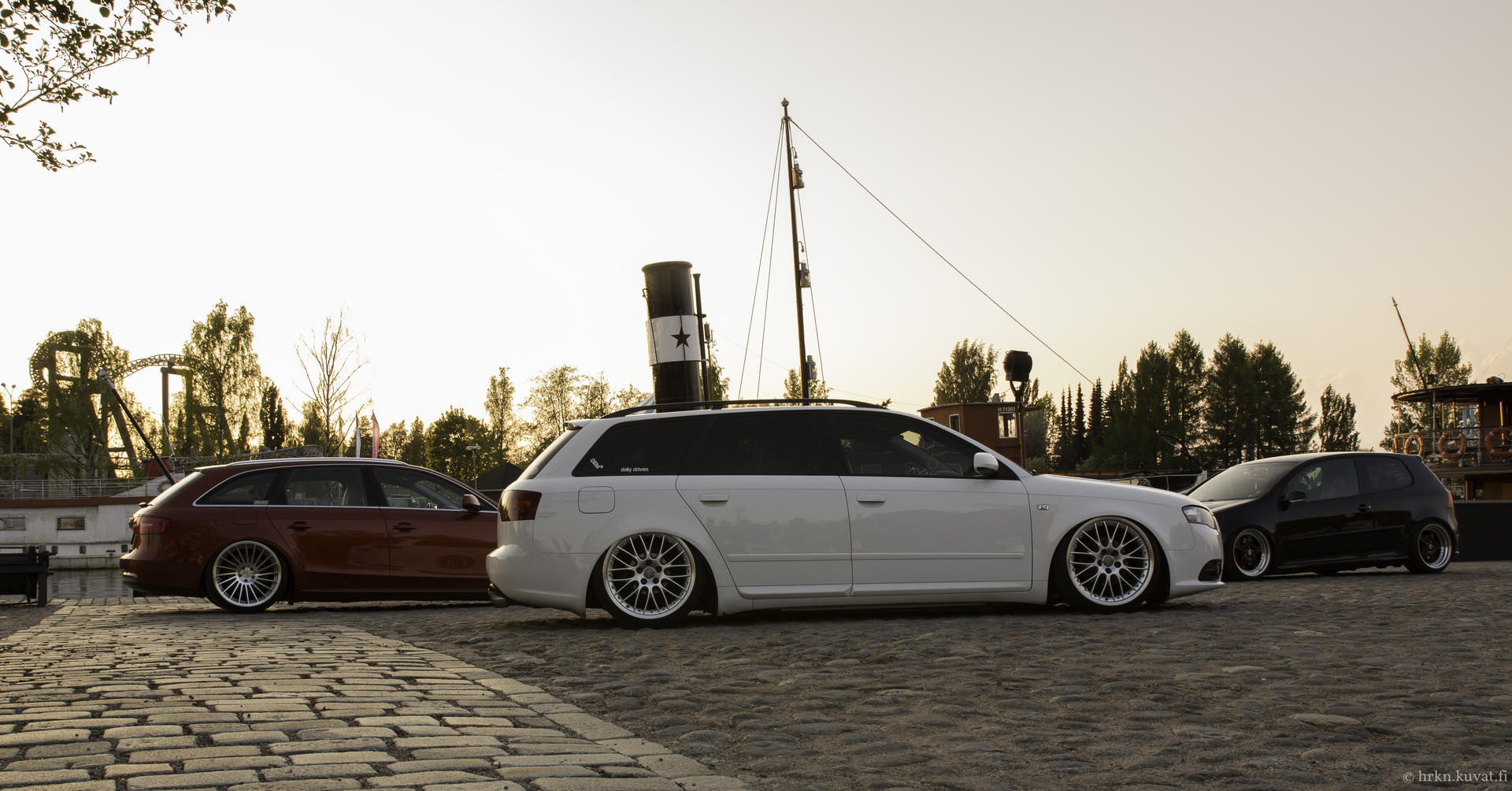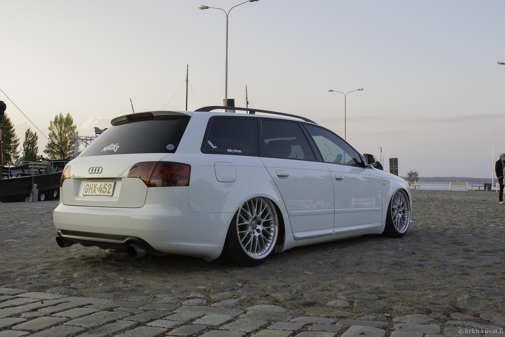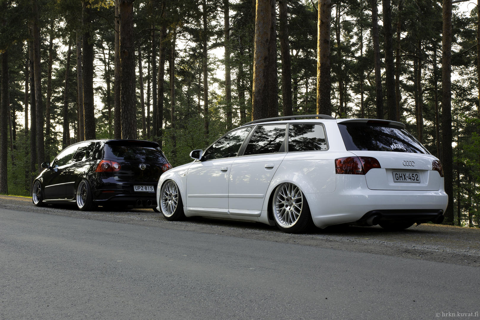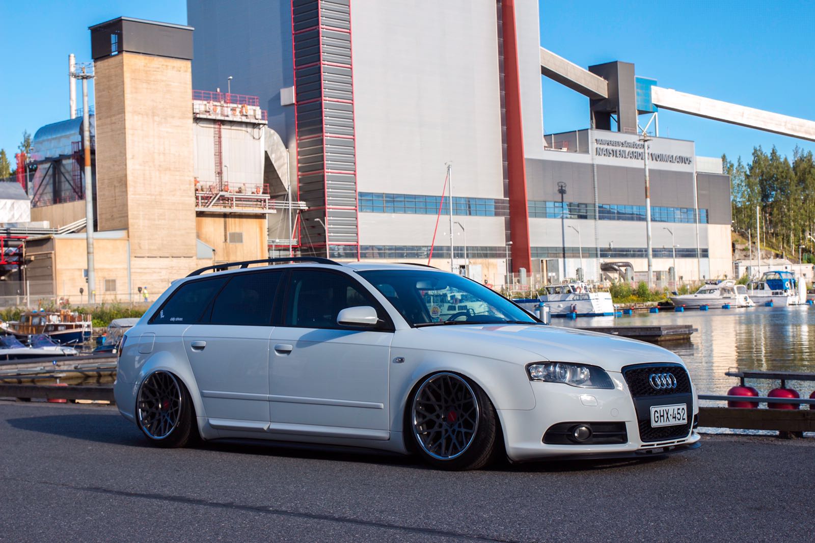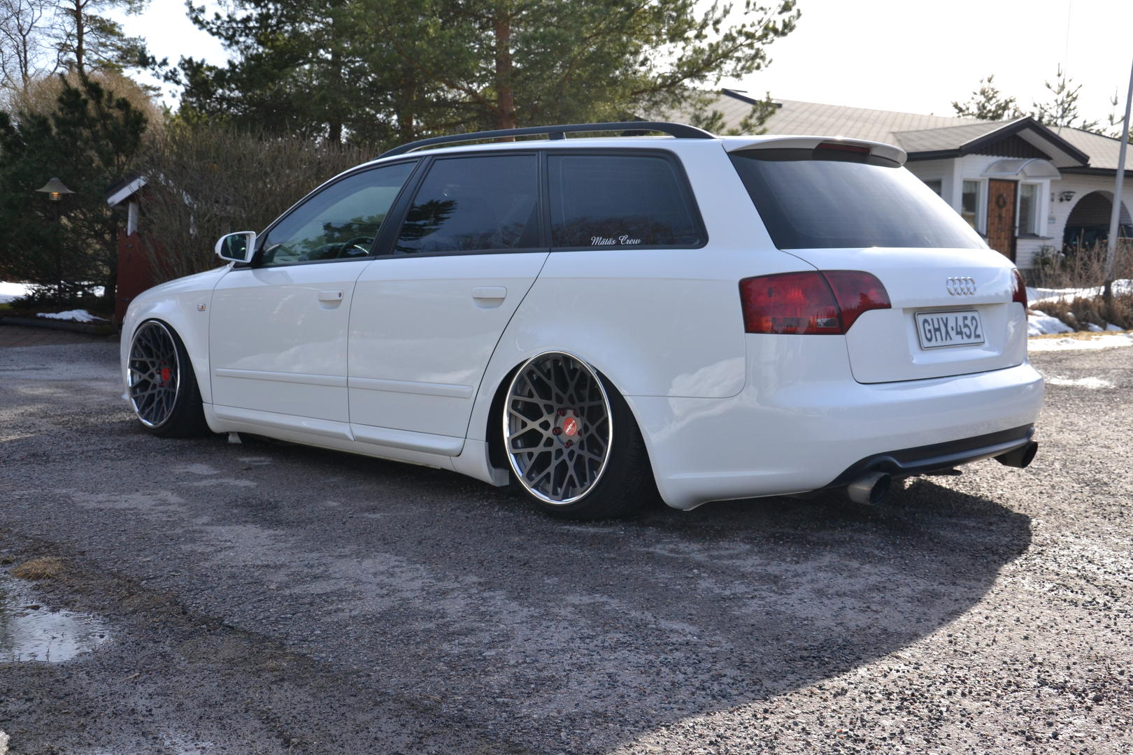 Pientä päivitystä taas Rotiformeja odotellessa. Audi kävi myllytettävänä tuossa ennen juhannusta, jolla saatiin kaikki talven aikana kertyneet pesunaarmut jne pois. Taidettu ajaa Laakkosella talvella harjakoneen läpi... Lisäksi keulille tuli perinteikäs cupralippa ja sivuille helmalinjaa madaltamaan CSR:n sivuhelmat. Seuraavaksi olis tarkotus hoidella toi etupää, eli tukivarsille tekemään lisää tilaa. Fitted Festiin olis sit suunnitelmana rullailla Roteilla ja keulakin alhaalla. Kakkikseenkin pitäis tässä jomit tempasta alle ja selvitellä pientä käyntihäiriötä, eipähän ole vapaa-ajan tekemisestä pulaa. :D