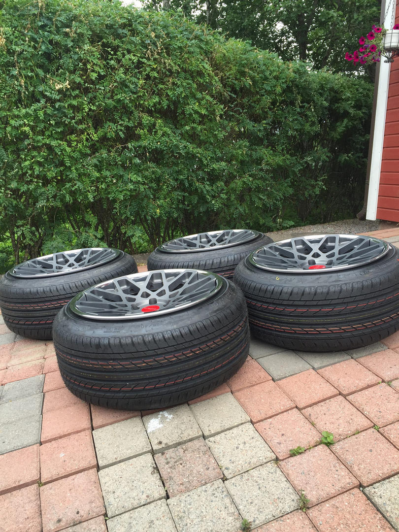 Koko kevät on tapeltu Rotiformien kanssa, ilmat ei pysyny sisällä ja varmaankin kieroksikin sain ajettua syksyllä. Loppujen lopuksi tulin järkiini ja vein Rimfixille hoitoon. Samalla lipat kiiltoon ja uudet kumit päälle, saa nähdä kuinka 225/40 istuu vai joutuuko vaihtamaan takas 35-profiiliseen.