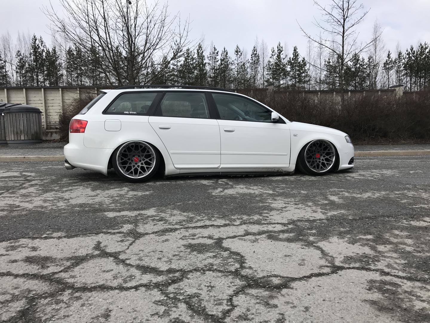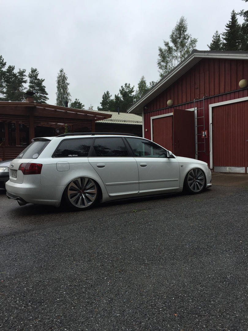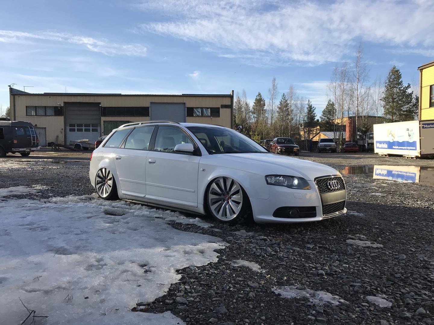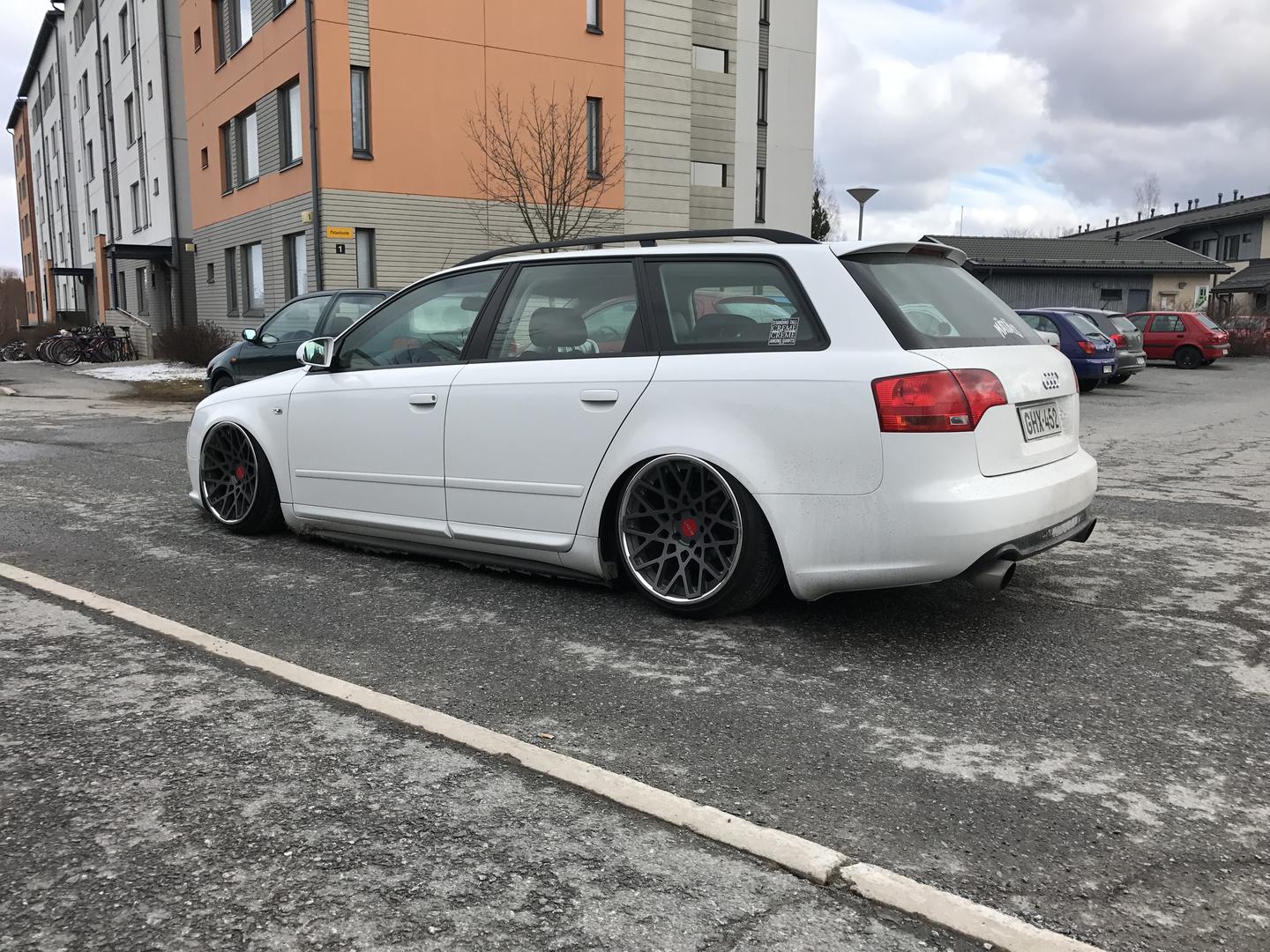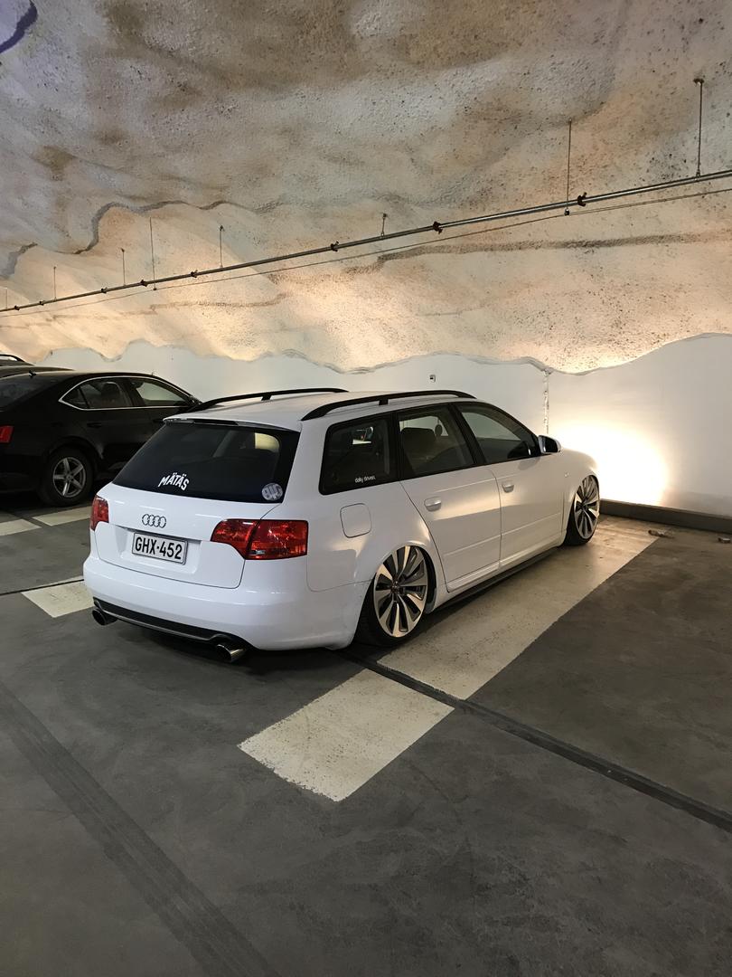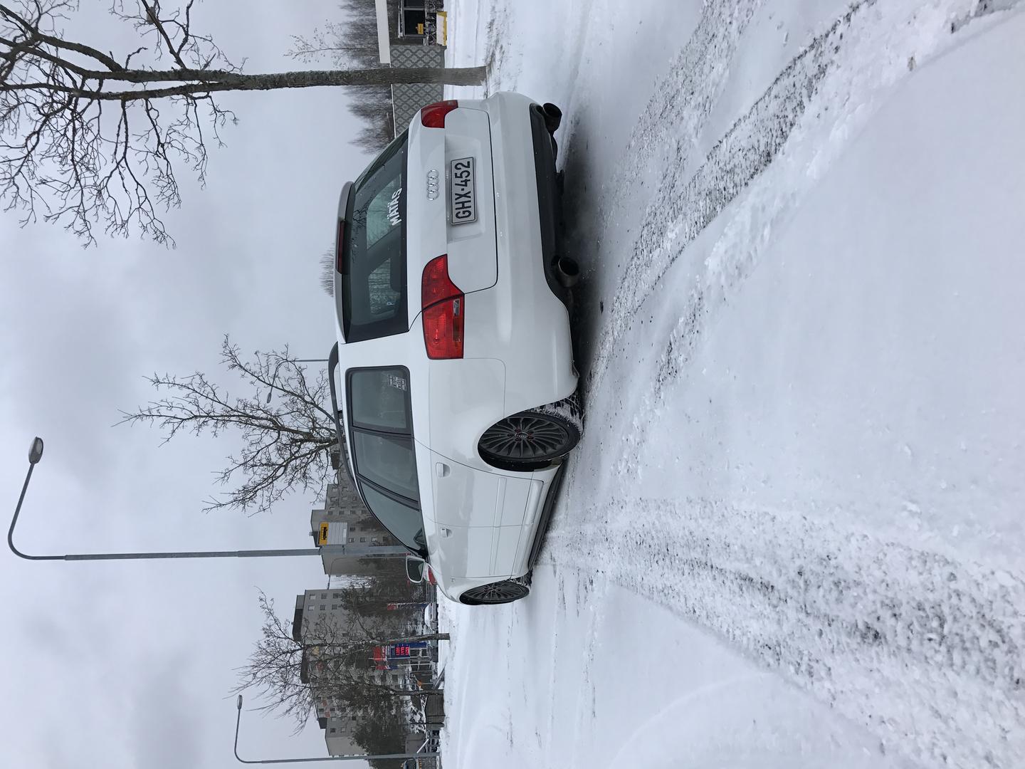 Talvi tuli ja meni, talvirenkaat tuli siis vaihdettua alle. Eihän se mikään nätti noilla ole, mutta menettelee. Sisälle tuli siis uusi vaihdekepin pussi+nuppi- setti. Rattikin tuli, mutta sen kanssa on vielä vähän säätöä. Myyjä siis lähetti A3:sen ratin, johon ei B7:n airbagi passakkaan. Hommasin ebaysta uuden bägin, mutta siitä ilmeisesti puuttui sisuskalut kokonaan ja se lähti takaisin. Töötti ei toiminut ja bägin kuorta pystyi painamaan sormella 3cm sisäänpäin. :D Nyt on toisesta paikasta bägi tulossa.