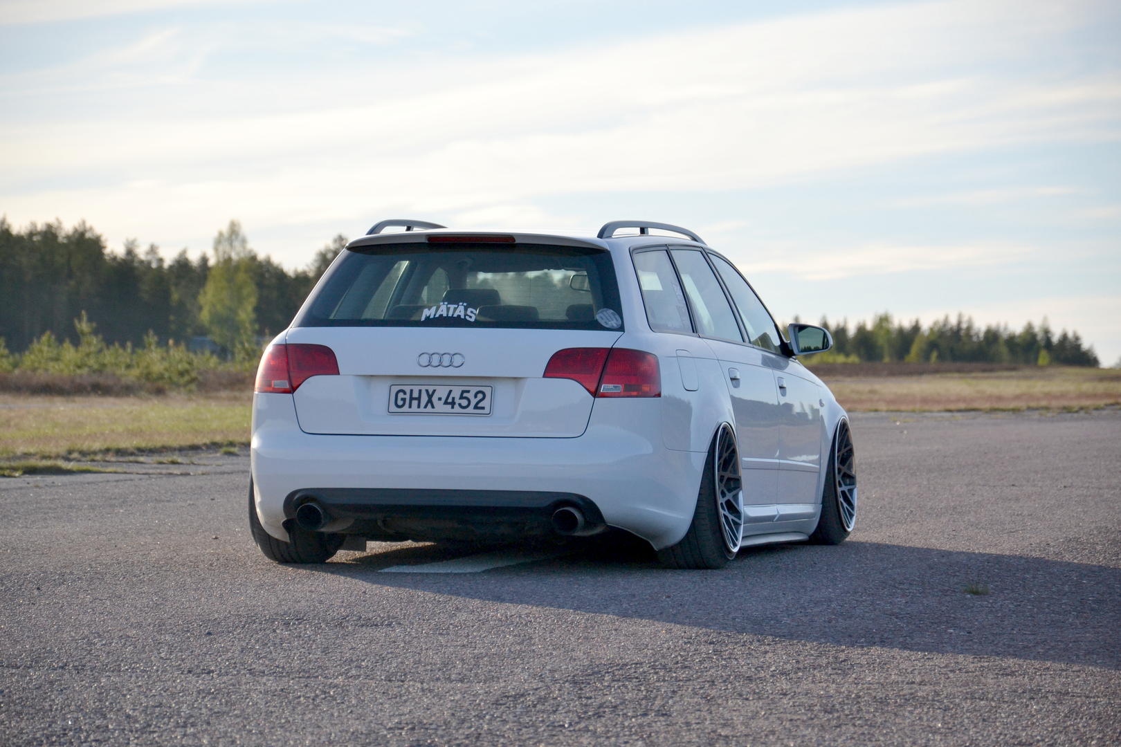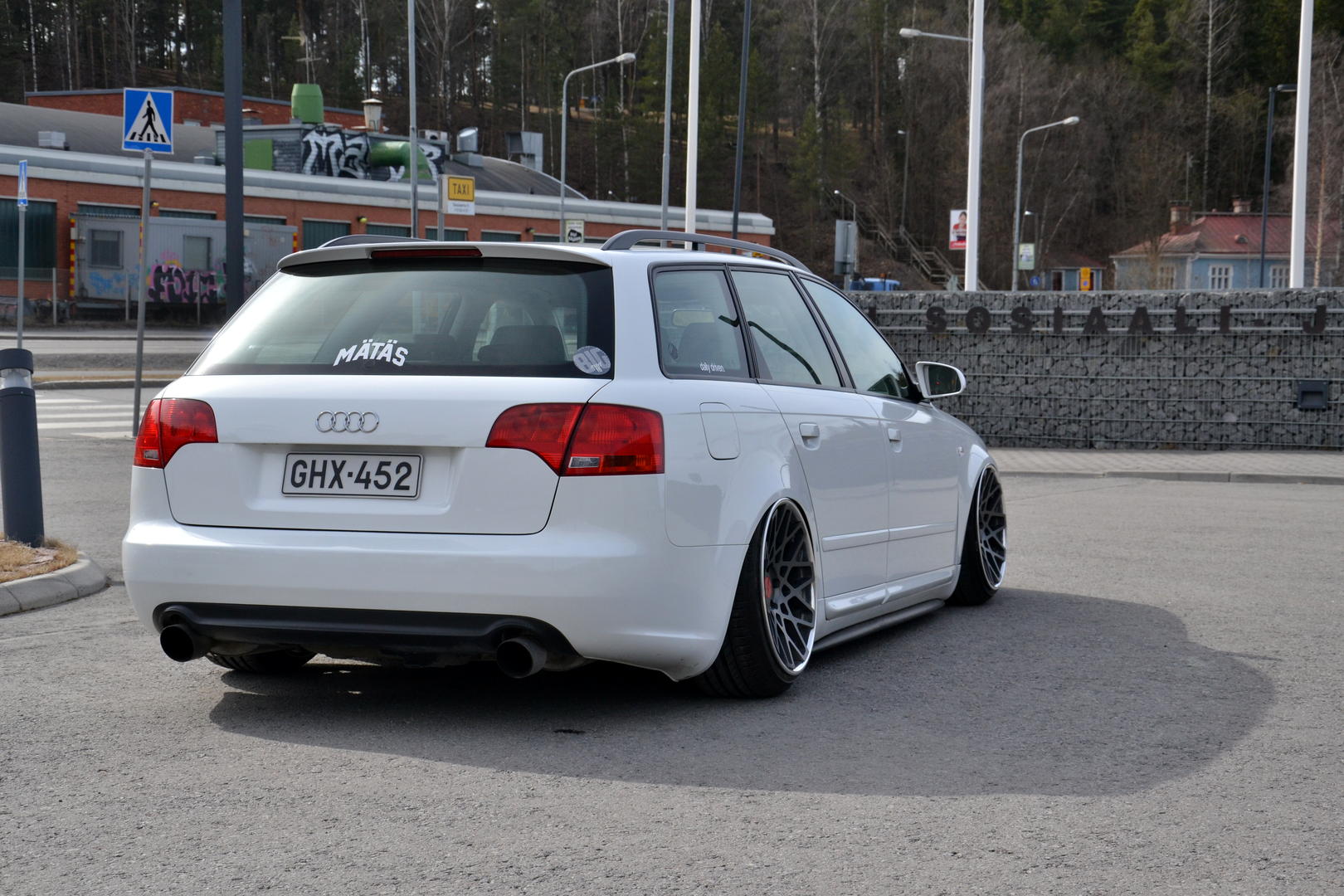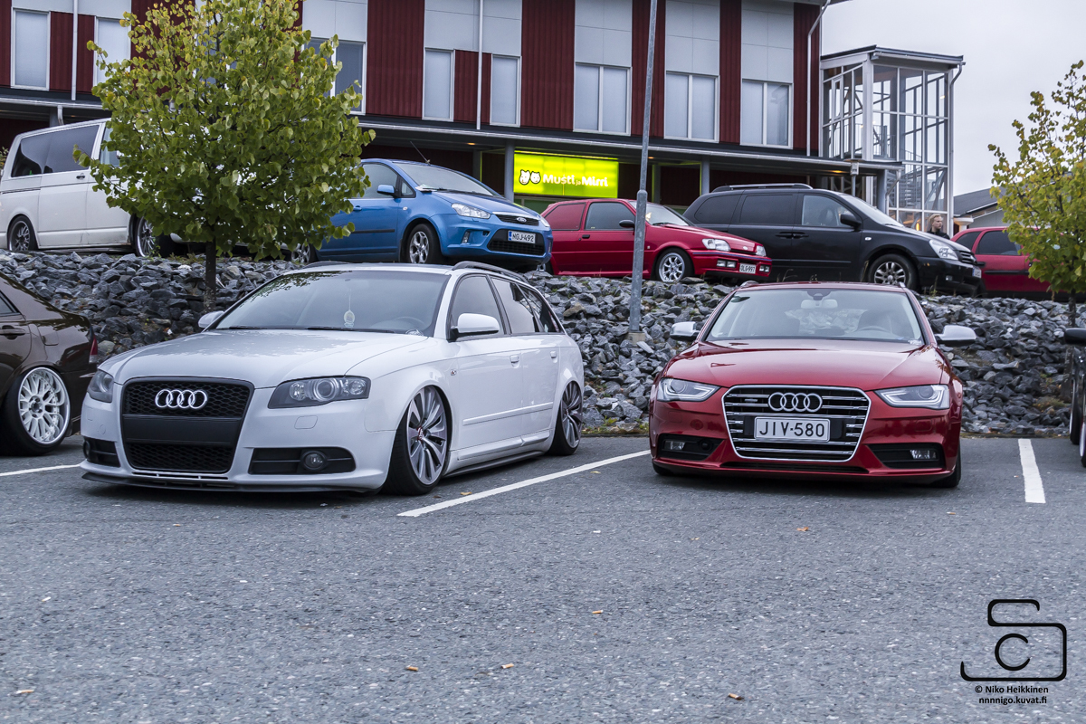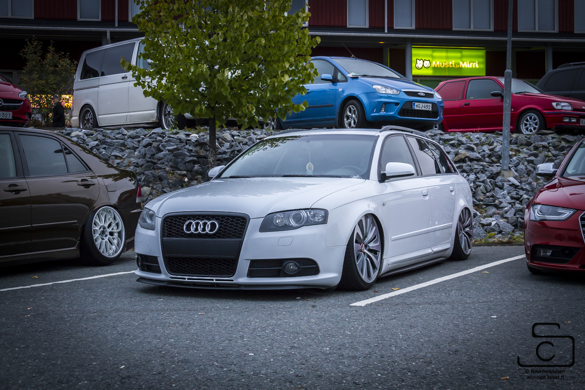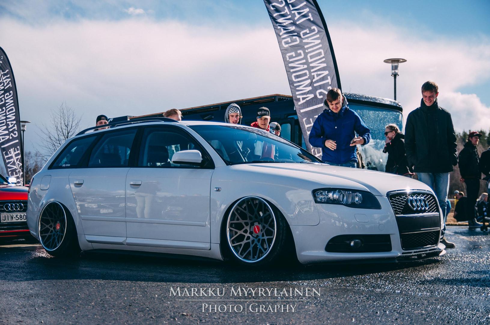 Talvi tuli ja meni, talvirenkaat tuli siis vaihdettua alle. Eihän se mikään nätti noilla ole, mutta menettelee. Sisälle tuli siis uusi vaihdekepin pussi+nuppi- setti. Rattikin tuli, mutta sen kanssa on vielä vähän säätöä. Myyjä siis lähetti A3:sen ratin, johon ei B7:n airbagi passakkaan. Hommasin ebaysta uuden bägin, mutta siitä ilmeisesti puuttui sisuskalut kokonaan ja se lähti takaisin. Töötti ei toiminut ja bägin kuorta pystyi painamaan sormella 3cm sisäänpäin. :D Nyt on toisesta paikasta bägi tulossa.
