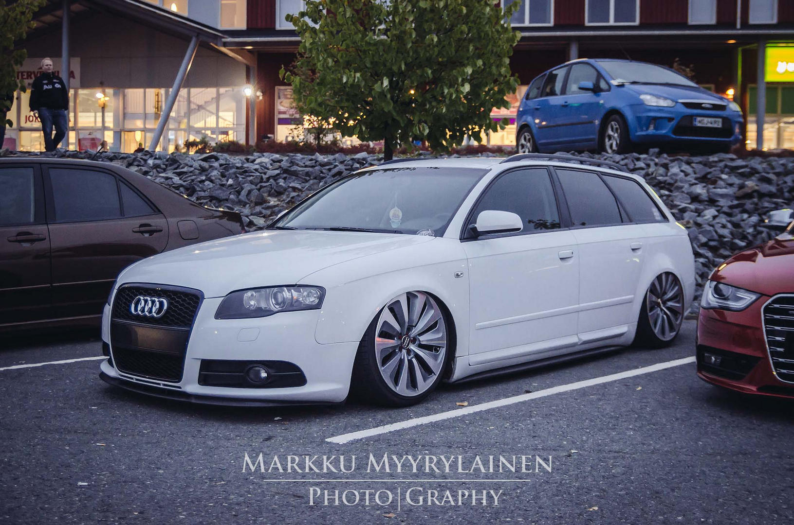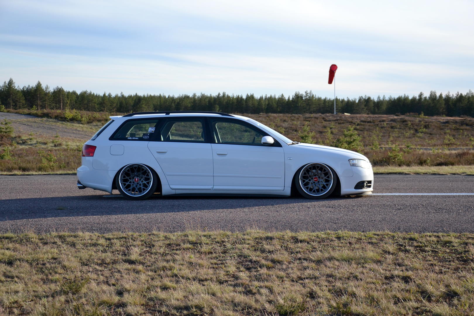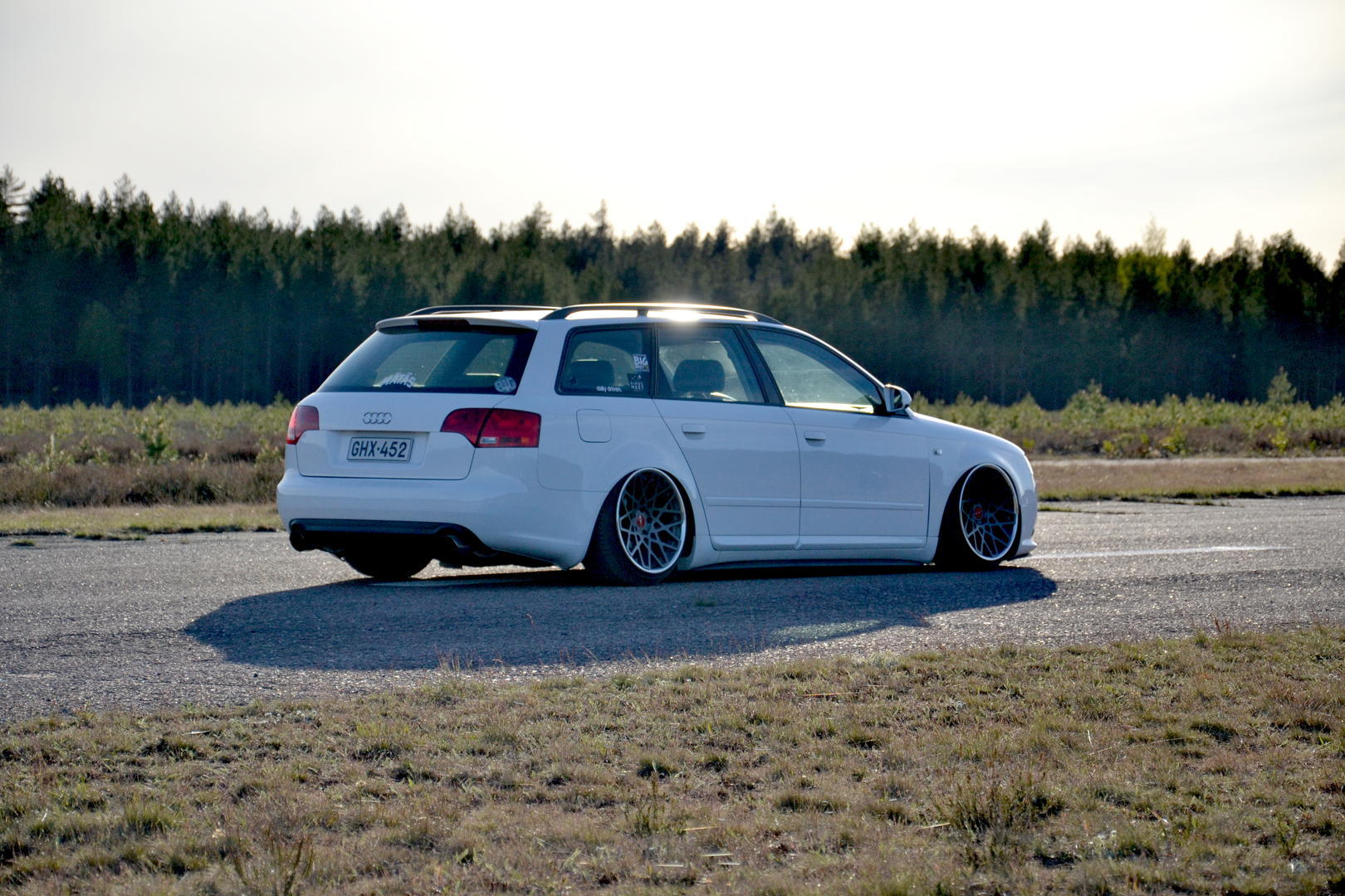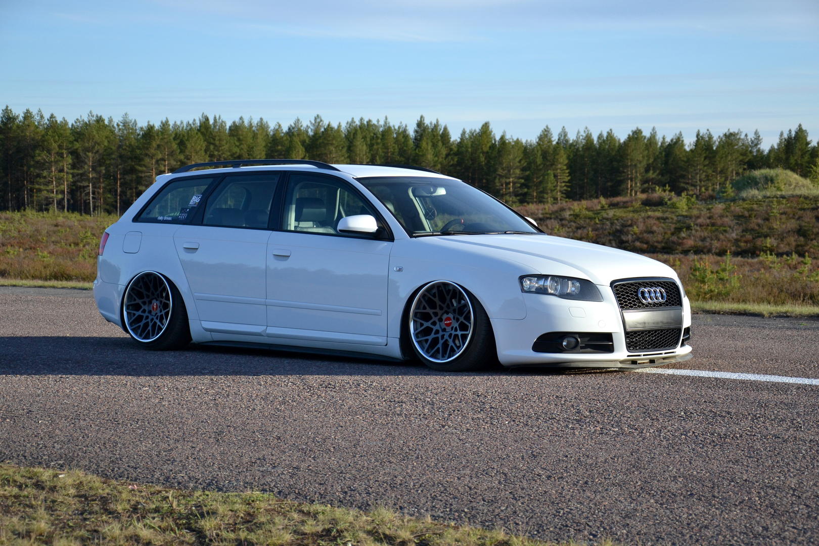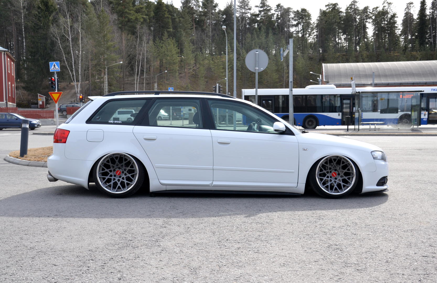 Talvi tuli ja meni, talvirenkaat tuli siis vaihdettua alle. Eihän se mikään nätti noilla ole, mutta menettelee. Sisälle tuli siis uusi vaihdekepin pussi+nuppi- setti. Rattikin tuli, mutta sen kanssa on vielä vähän säätöä. Myyjä siis lähetti A3:sen ratin, johon ei B7:n airbagi passakkaan. Hommasin ebaysta uuden bägin, mutta siitä ilmeisesti puuttui sisuskalut kokonaan ja se lähti takaisin. Töötti ei toiminut ja bägin kuorta pystyi painamaan sormella 3cm sisäänpäin. :D Nyt on toisesta paikasta bägi tulossa.