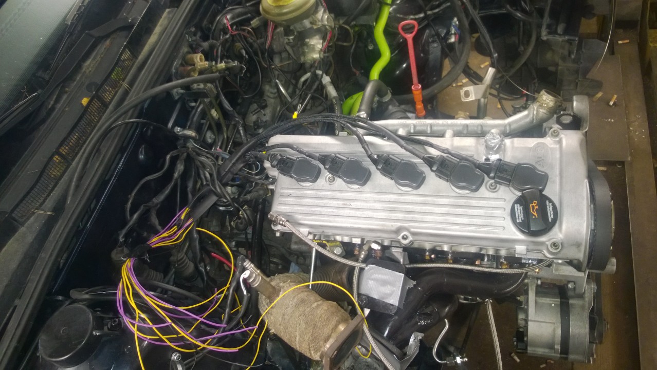 Noniin hall anturikin kävi hienosti. Pitää vain hall kehään porailla uusi jako kun ikkuna ei satu kohdalleen. Vauhtipyörä jäi aikataulusäätöjen takia keventämättä, Joten nostettiin Matin kanssa kone paikalleen. Enää tarvitsisi askarrella tyhjästä huohotukseen letkut puolien johtosarja ja muutamia kiinnikkeitä. Loppu onkin ihan bolt on asennusta:)