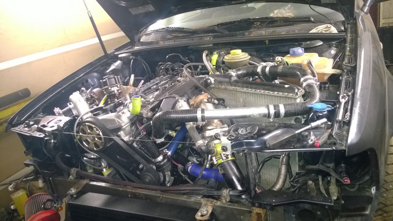 Vajaa puolivuotta siinä vierähti mutta nyt on päästy ajamalla tallista uloskin:) Kytkin ottaa sen verran napakasti niin rupeaa voimansiirrosta löytymään välystäkin.etupalkkia joutuu vielä vähän modailee että saa välijäähyä alaspäin ja saa puskurin ritilät paikalleen.Rupesin tänään vaihtamaan s2 nilkkoja eteen, Mutta hommat tyssäsi siihen että 108mm nivel on sisäpäästä m10 pulteilla kiinni ja pieni m8:lla. Onko kellään infoa mikä tuon m10 pultin pituus ja kierteen nousu on?