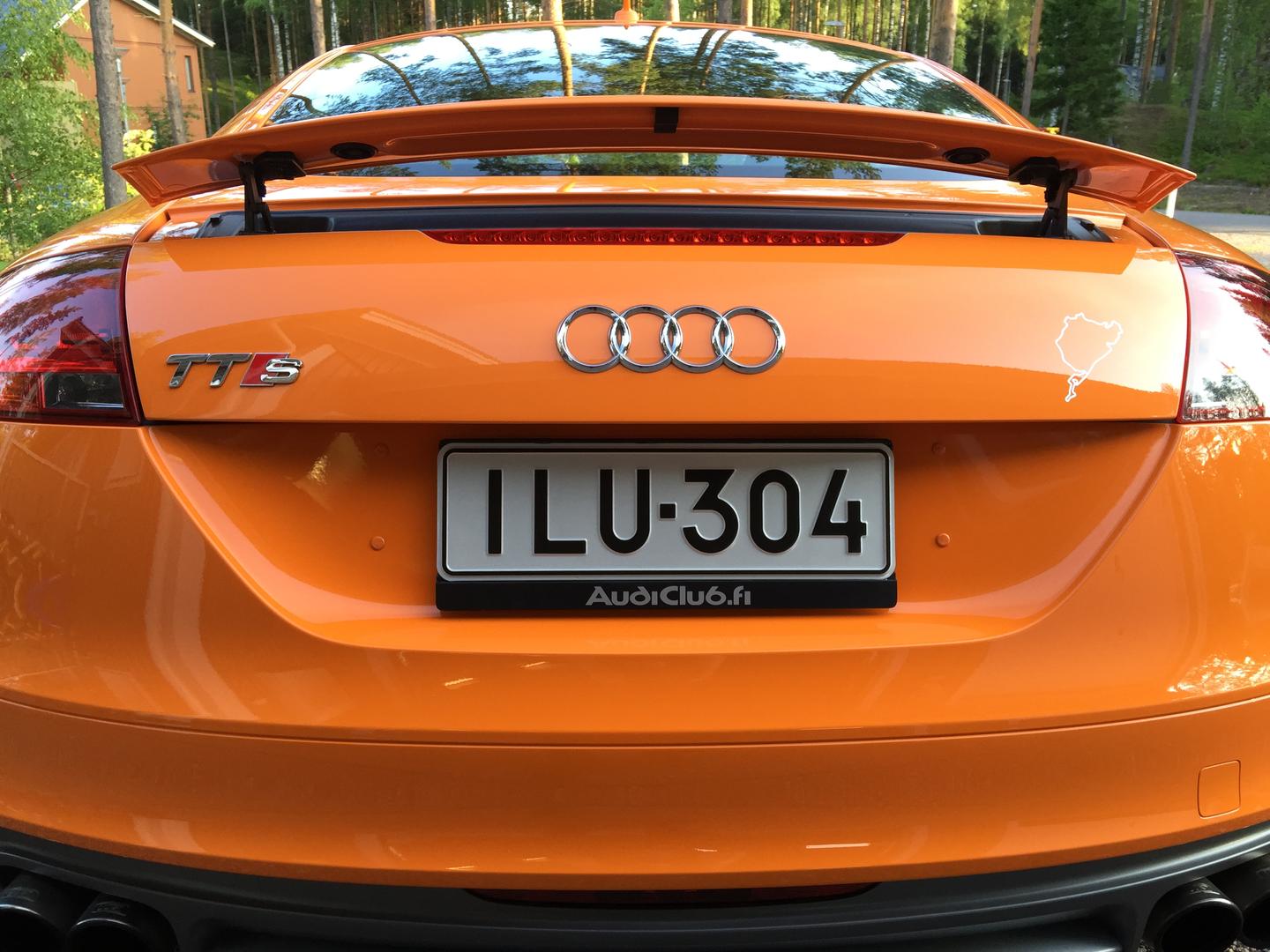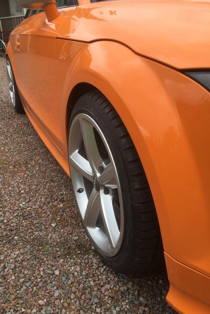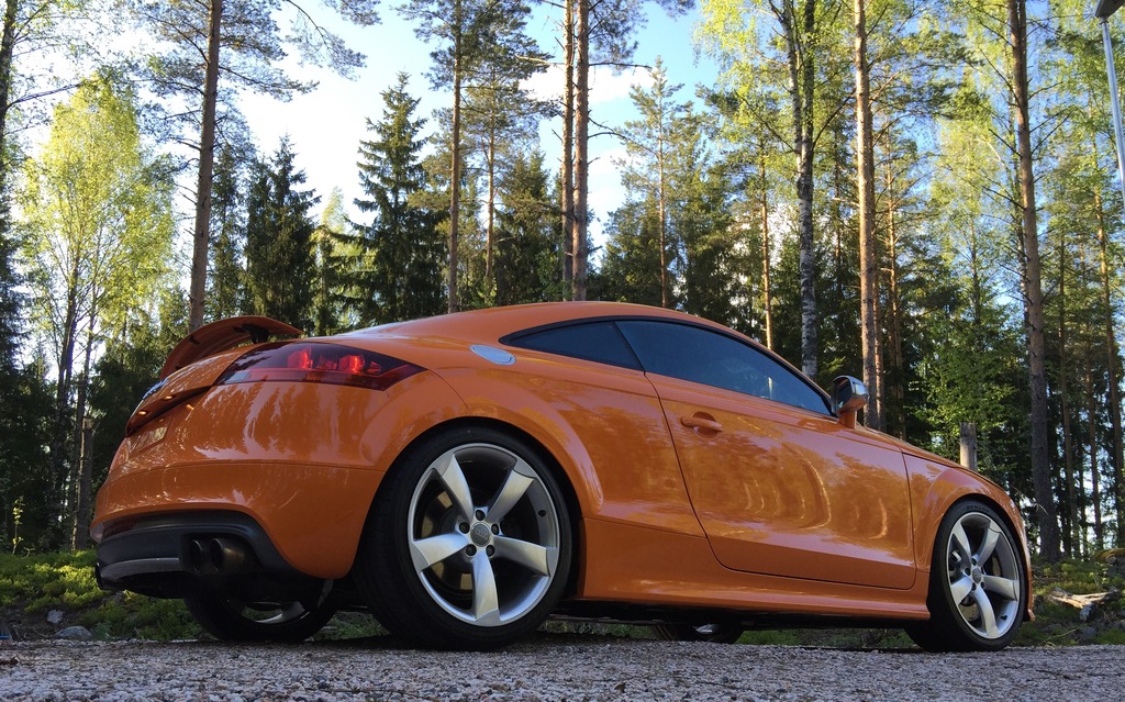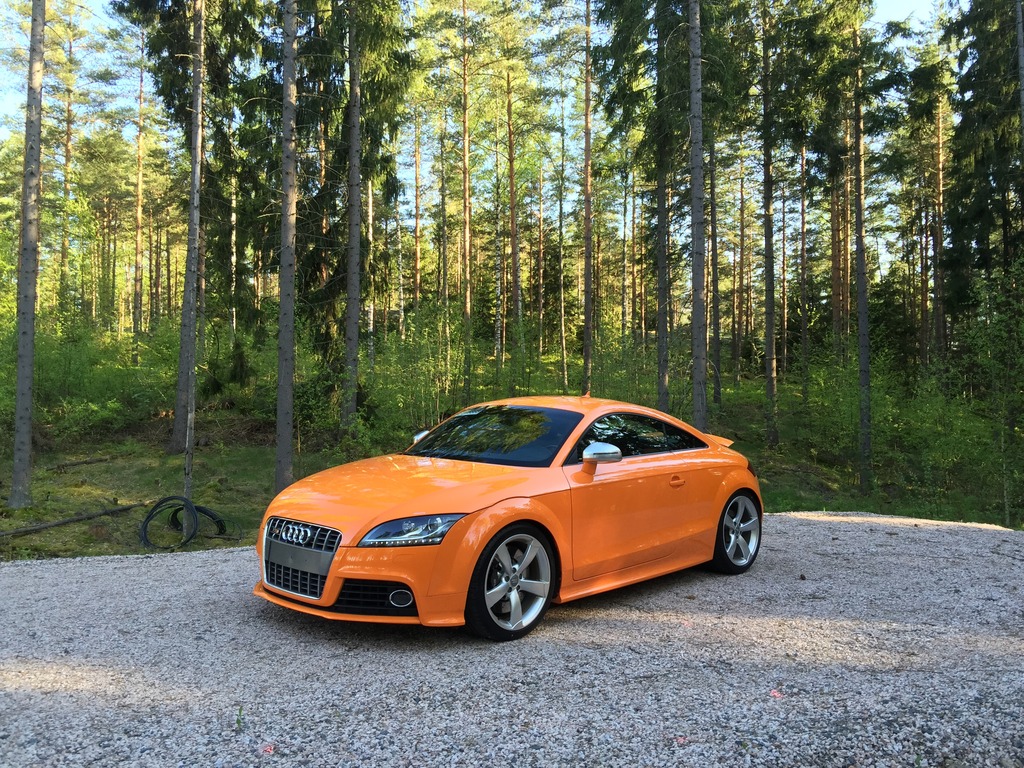 Janhe, mun kippohan se siellä. Se vaan mallia TT, TTRS:ässän spoilerilla. Ja tomppa väri on bueno, kääntää vähän liiankin hyvin katseita. Huoneistokeskus ja Posti läppää on tullut kuultua kyllä vähän liikaakiin, mutta väri ei vaihdu!