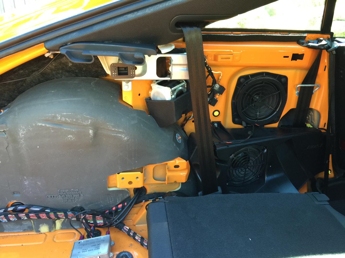 Iloinen yllätys oli myös tuollaisen "subikotelon" ja vahvistimen löytäminen tuolta kuskin puolen kyljestä.