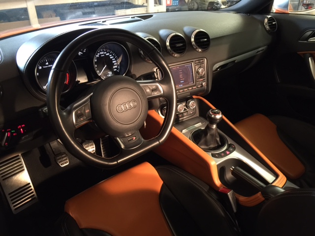 Kyseistä kulkinetta oli kuitenkin kovin vaatimattomasti tarjolla täällä peräpohjolassa, joten katseet suunnattiin netin avulla kohti Saksaa. Auto siis piti olla Audi TTS ja manuaalisena (nelikko tuleekin mallissa automaationa). Hakukoneen tuloksien tarjonnassa ihastuin heti kohteisiin joissa oli oranssi-musta kokonahka sisustus. Ulkokuoren värivaihtoehtoina omaa silmää miellytti musta, valkoinen ja oranssi. Noista väreistä musta olisi ollut se tyylikäs ja perusvarma ratkaisu. Valkoinen taas näytti tyylikkäämmälle, mutta työläälle puhtaanapidon kannalta. Oranssi väri taas oli jotenkin irstaan härski. Mutta kun tälle "järkevyyden" linjalle oli kerran lähdetty, niin ajattelin sitten repäistä kunnolla ja loppuun asti. Piti siis saada oranssi.
