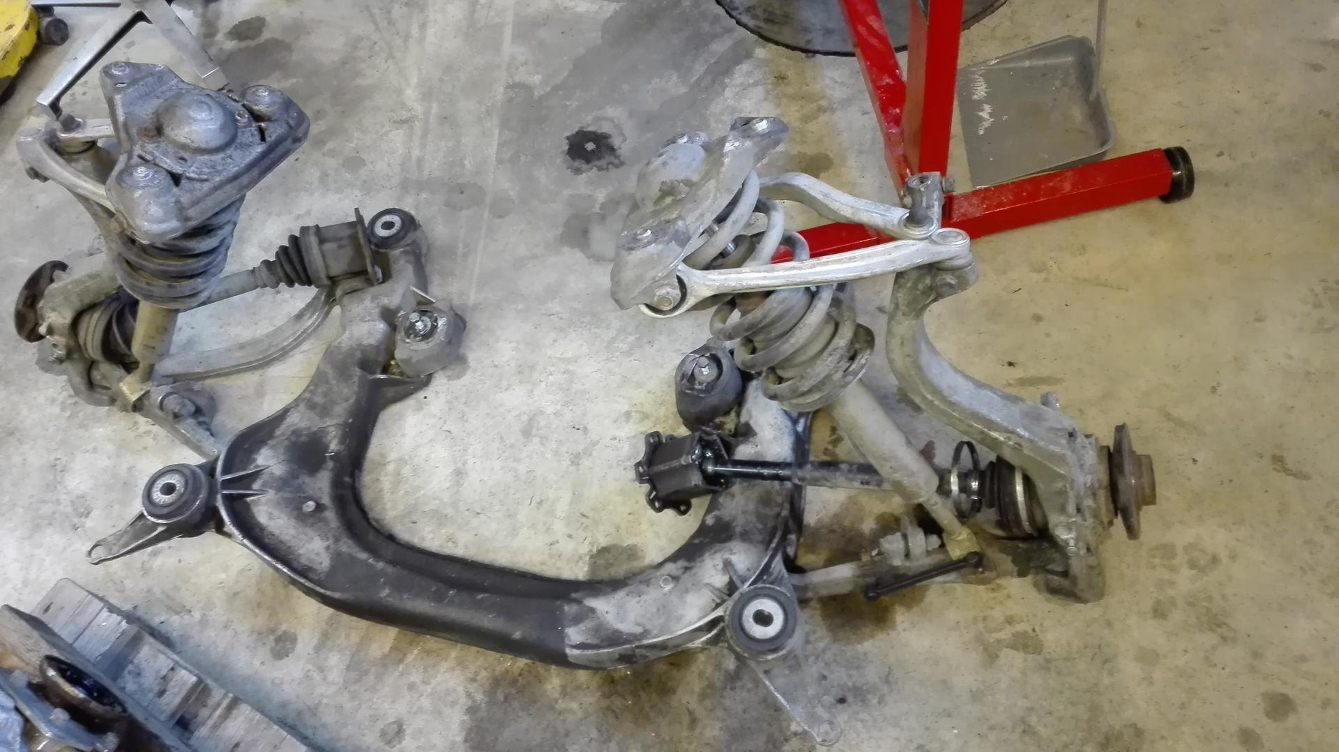 Tänään puolen päivän saldoksi jäi lähinnä turbojen irroitus. Yllättävän iso homma oli niidenkin saamisessa irti. Ne taidan kiikuttaa jo ensi viikolla huollettavaksi. Onko mitään ideaa lähteä muuttamaan niitä (billet siivet?), kun mitään muuta suurempaa muutosta en tekniikkaan tule tekemään (pl. vapaammin hengittävät downpipet)?