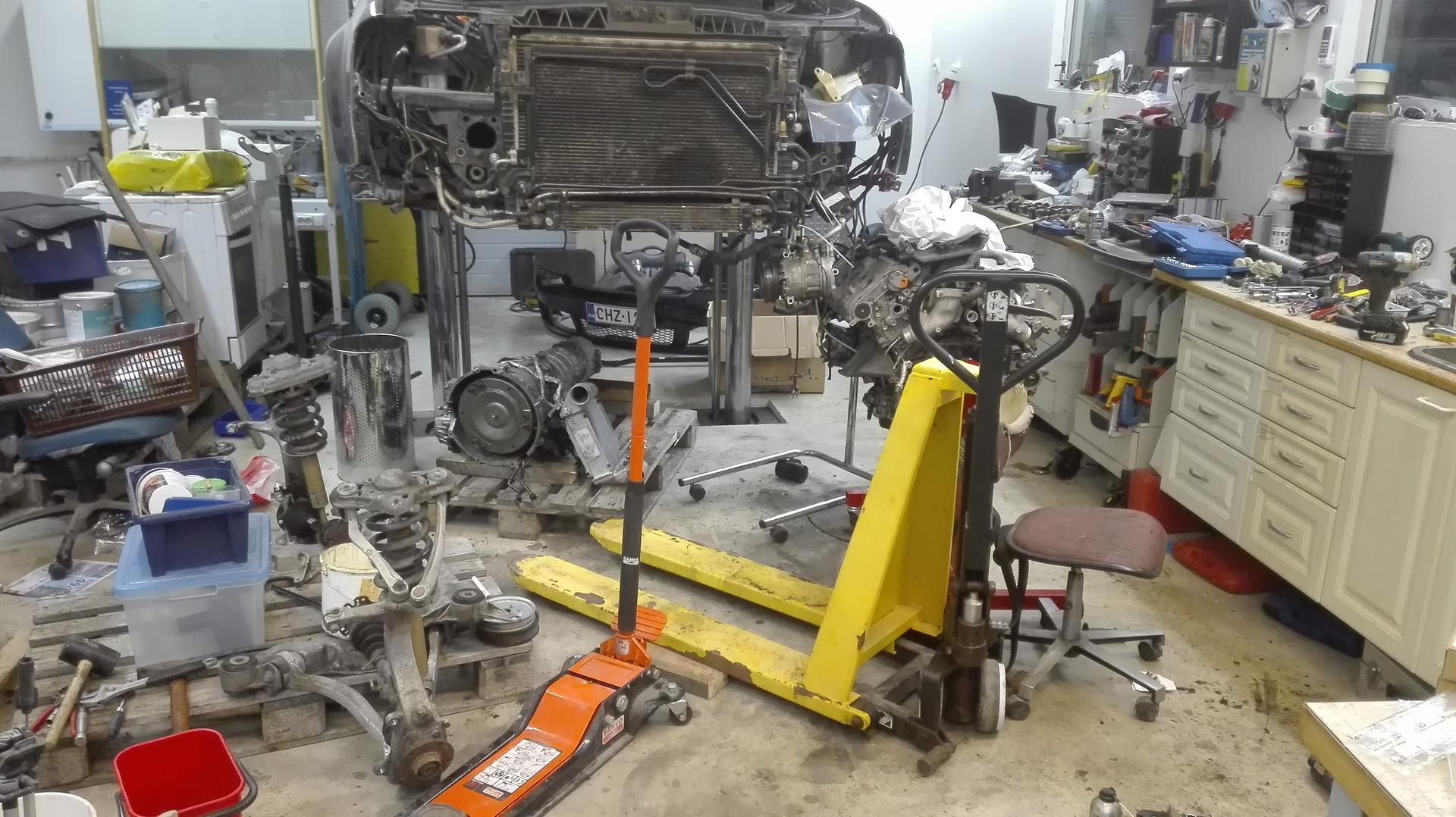 Tätä en olekaan ehtinyt viime päivityksen jälkeen kuin parina iltana käydä edistämässä, jolloin purin irti jarrut, pakoputken, lämpösuojat, ja niiden alta kardaanin, suurimman osan johdoista.