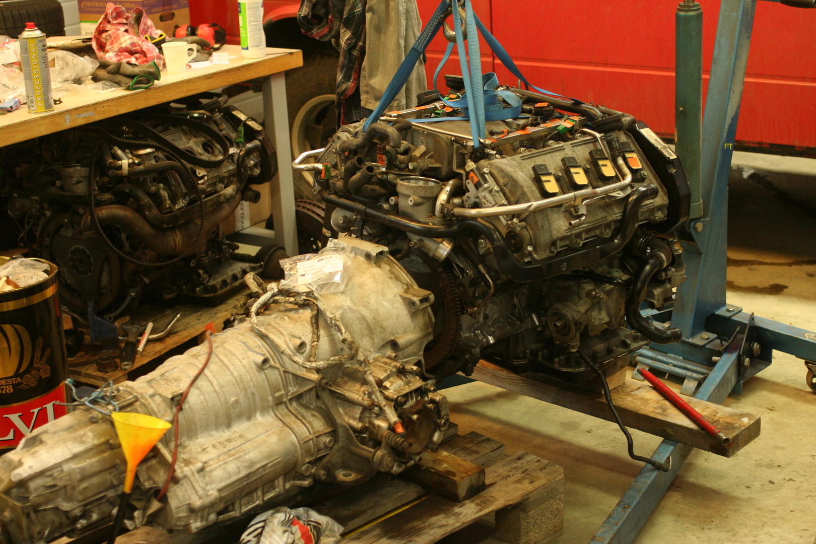 Eihän se periaatteessa ole mikään vaikea homma, en ole vaan koskaan irroittanut mistään autosta moottoria :)