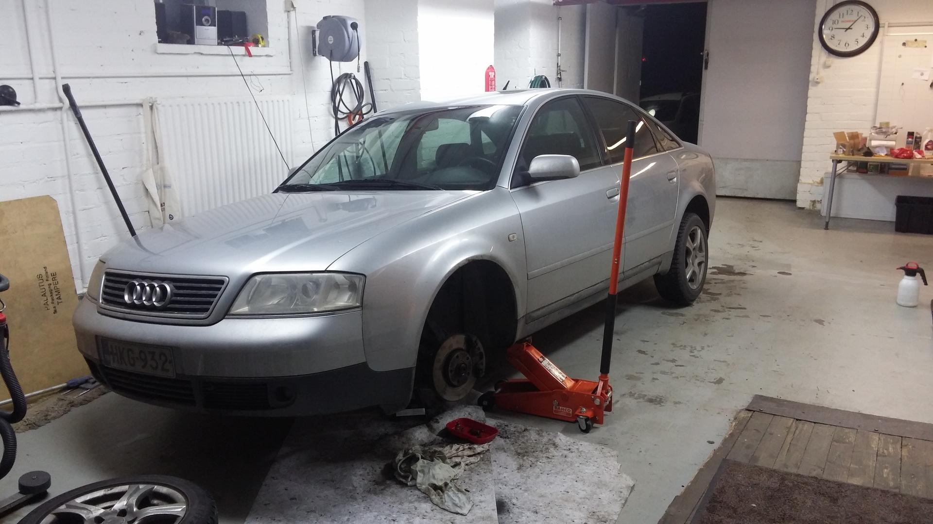 Autoni on vuosimallin 99 a6 c5 sedan. Auto on ostettu aikoinaan Saksasta ja tuotu Suomeen vuonna 2006. Auto on Suomessa ollut minua ennen kahdella omistajalla ja itse bongasin tämän Audin nettiautosta. Auto vaikutti hyvältä ja niinpä se tuli ostettua Lahdesta pitkän autokuumeen jälkeen. Tuolloin autolla oli ajettu noin 288000 km.