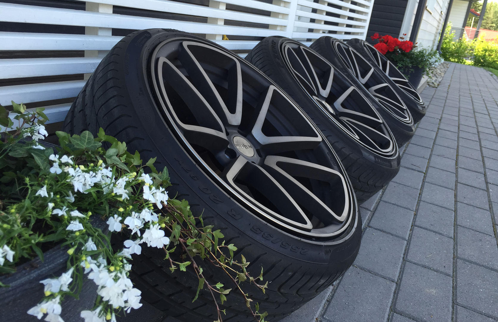 9,5x20" ET36 255/35-20" Nokian Hakka 8 nastat pyörii mainiosti dynamicissa (ja alempana) kun mankeloi etukaaret.