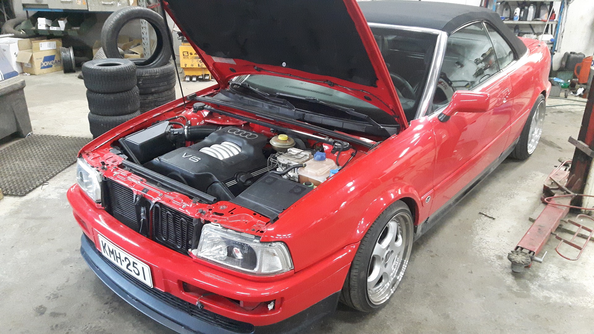 Projektin kohteena on vuoden 95 audi cabriolet mallisarjan tehokkaimmalla 2.8 aah moottorilla. Sisältä löytyy manuaalinen ilmastointi, sporttinahat ja kolmipuolainen airbagillinen ratti ja olihan tuonne apukuskillekin airbag sovitettu.