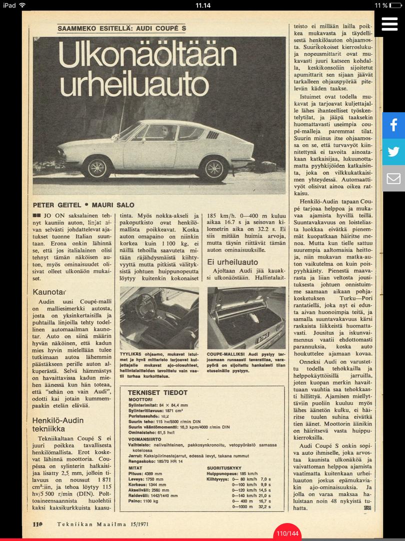 Audi 100 Coupe S museoauto projekti.