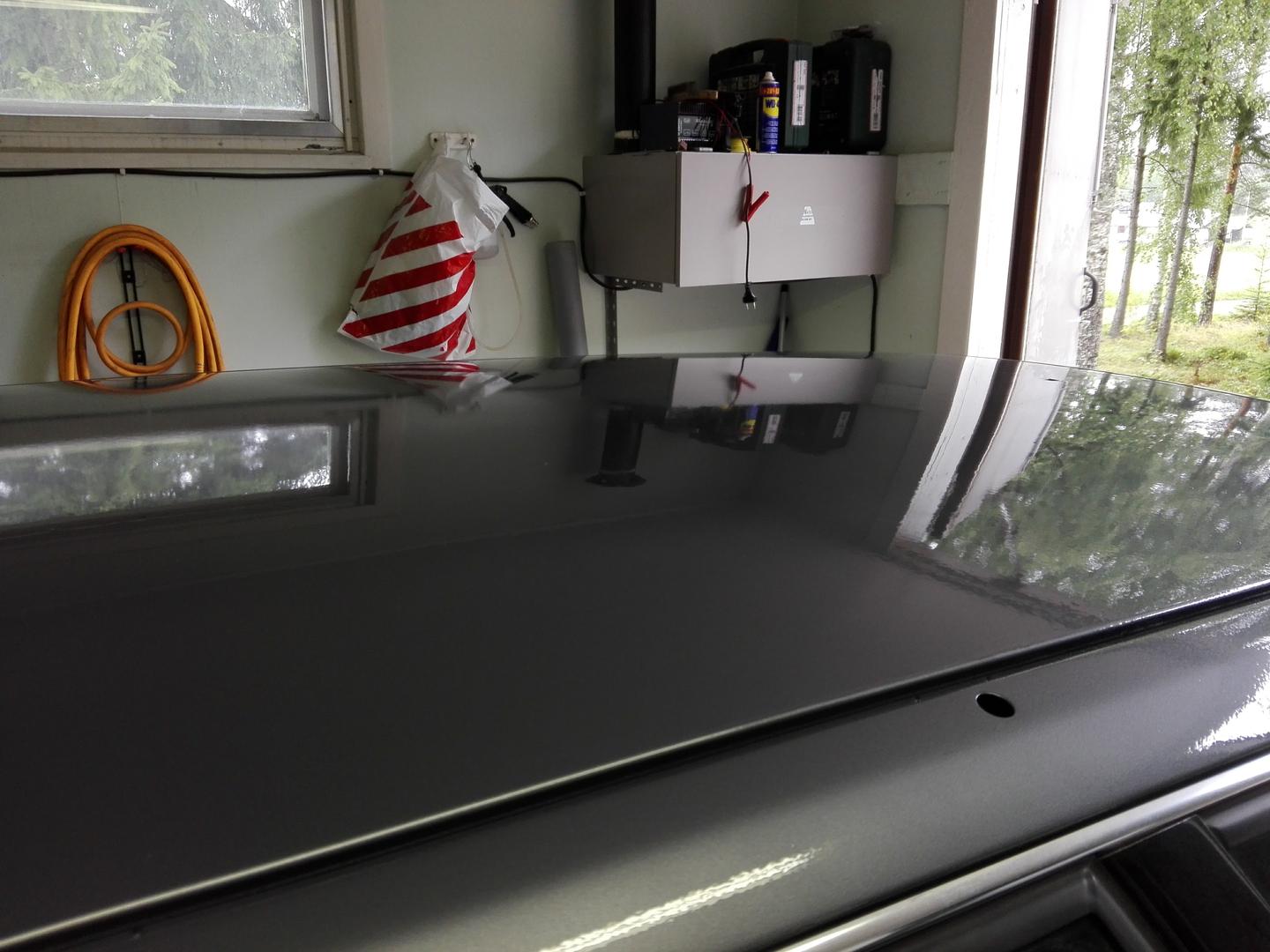 Katsotaan lopputulosta kunhan uskaltaa alkaa vesihioa ja kiillottaa. Saa nyt pariviikkoa kovettua rauhassa vai pitäisikö antaa vielä pidempään?