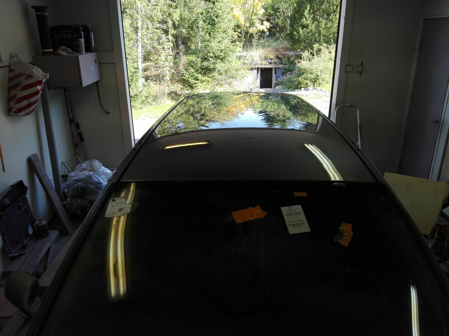 Katon maalaus meni uusiksi, kun löyty sopivasti tuulilasin takaa ruostetta. Samalla tuli tempastua uusi lasi paikalleen.