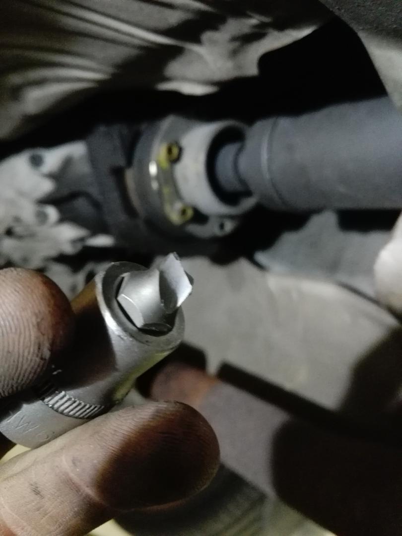 Homma alkaa totemalla että ahdasta tulee kun nosturia ei ole, toinen toteamus ampuessa kardaanin pultteja irti ja rikkoessa se viimeinenkin hylsy että tiukassa tuntuu olevan.
