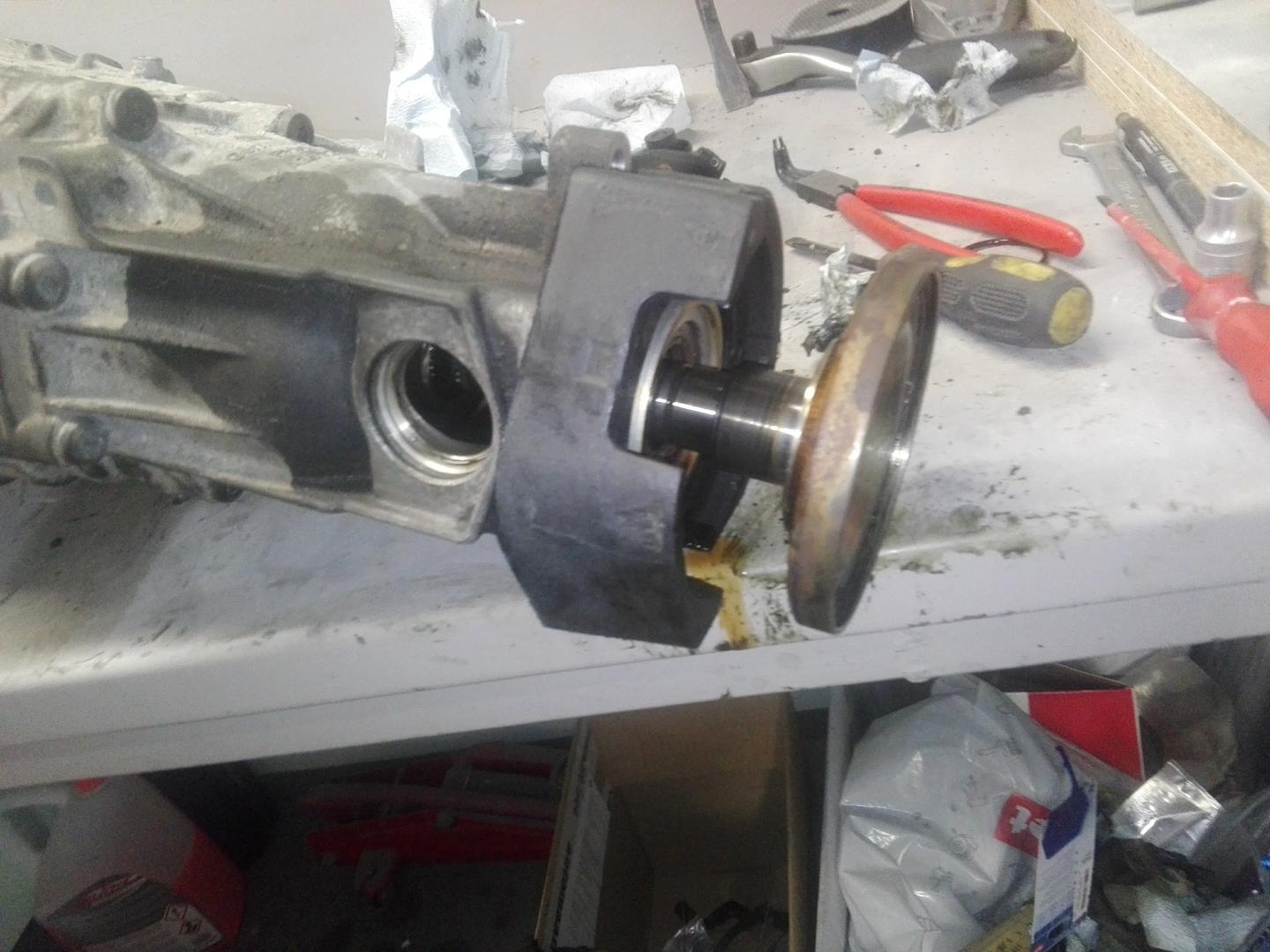 Vähä tuli touhuttua mitä pysty. Eli se muovinen kansi pois laatikon pohjasta ja sietä näkyy lukkorengas jonka poistamalla kardaanin laipan voi vetää pois. Tämän jälkeen stefa pois.