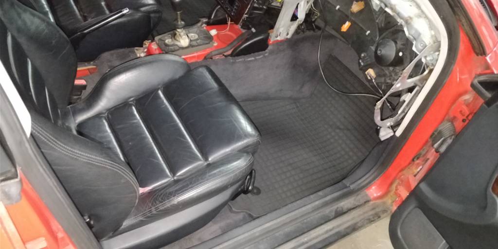 Samalla otettiin lattiamatto ulos autosta ja se pestiin painepesurin ja mäntysaippuan kera puhtaaksi ja vietiin pariksi viikoksi kuivumaan lämpöiseen. Tänään taottiin lattiapellit taas takaisin muotoonsa (vähän sieltä täältä noussut pellit sisäänpäin) ja matot asennettiin takaisin autoon. Kojelaudan muoveja vähän joutuu korjailemaan vielä ennen takaisinlaittoa. Onko vinkkejä millä liimalla noihin saisi parhaiten liimailtua alumiinisiä korvakkeita rikkoutuneiden tilalle? Jotain yleisepoxia hain jo kaupasta ja ajattelin sitä koittaa, jos ei parempia ehdotuksia tule?