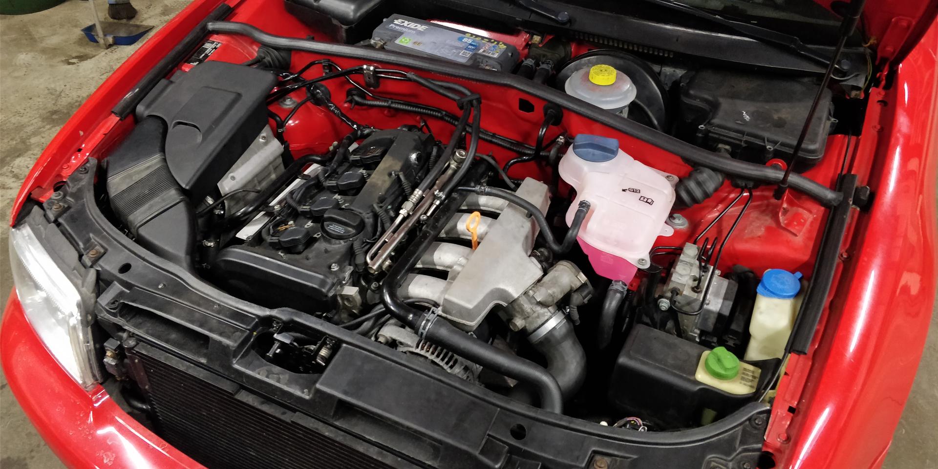 Tänään tuli laitettua huohotusputkisto paikalleen, kun ei öljyt meinanneet pysyä koneessa sisällä ilman putkia. Lohkon reiästä tykkäsi räkiä kovastikin öljyä sotkien moottoria huolella... Huohottimeen piti tilata korjaussarja, kun yllättäen lohkon pään putki oli murusina suodatinjalan sisällä. Turbon imuputken päähän piti viritellä vähän letkua, että sai sinnekin päähän huohottimen kiinni. Nyt kuitenkin tuli todettua, että pancake-venttiili ja pcv menee vaihtoon, kun tuo öljykorkki tykkää pomppia kun sen avaa. Tuli siis luettua täältä foorumilta tuon 1.8 huohotussysteemin toimintaan liittyen...
