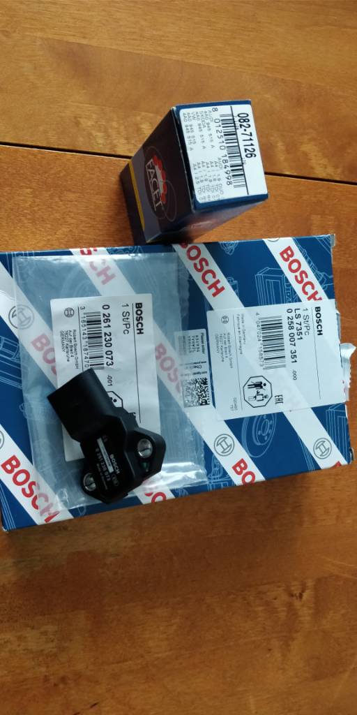 Jarruvalokytkintä ei autossa tällähetkellä ole, kun olin aluksi vahingossa tilannut 2-napaisen 4-napaisen sijaan, mutta huomiseksi pitäisi tulla uusi. Samaan tilaukseen laitoin myös s3 map anturin, kun tänään tutkiessa tajusin tuon nyt paikallaan oleva TDI-anturi onkin vain 2.5bar, kun pitäisi olla 3bar mappi. Myöskään tuntemattoman määrän ajettu ja rumasti jatkettu lambda-anturi ei miellytä silmää, joten siihen on tilalle tulossa Skoda superbin AWT-moottoriin sopiva lsu4.2 lambda joka oli muistaakseni 154cm johdolla. Huomenna sitten näiden asennus