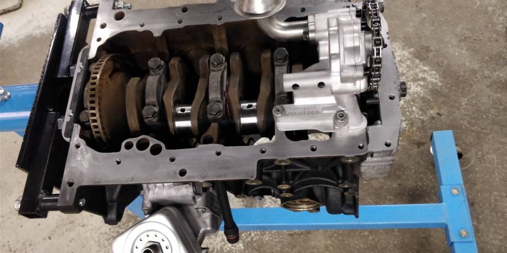 Apuakselin laakerin poistuttua paikalta, sai myös moottori lähteä konehuoneesta ja lihoiksi. Ehdin jo öljypumpun hommata tähän AEB moottoriin vaikka vähän epäilin ettei siinä kyllä vian pitäisi olla. Koko aikana ei ole minkäänlaista naputusta tai rouskutusta moottorista kuulunut ja vähän sitä porukalla ihmeteltiinkin jo, että kuinka se on tuo takempi laakeri lähtenyt kun yleensä kuulemman menee etummainen jakopäästä.