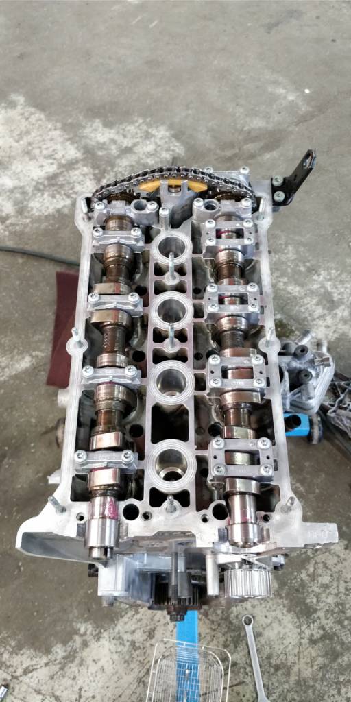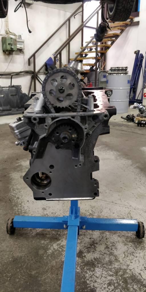 Myös nykyistä moottoria vähän huollettiin, eli jakoketju nokkien väliin vaihdettiin ja kiristin vaihdettiin kunnostettuun. Kiristin pestiin ensin ultrapesurissa Koivusen pesuaineella ja liukupinnat vaihdettiin Cs-partsilta tilattuihin uusiin. Samalla käytettiin irti suodatinjalka, sillä suodatinjalan kannen öljykanavan takaiskuventtiili oli ruuvautunut irti. Takaisku paikalleen ja kylmäkäynnistyksen pärähdys hävisi sillä.
