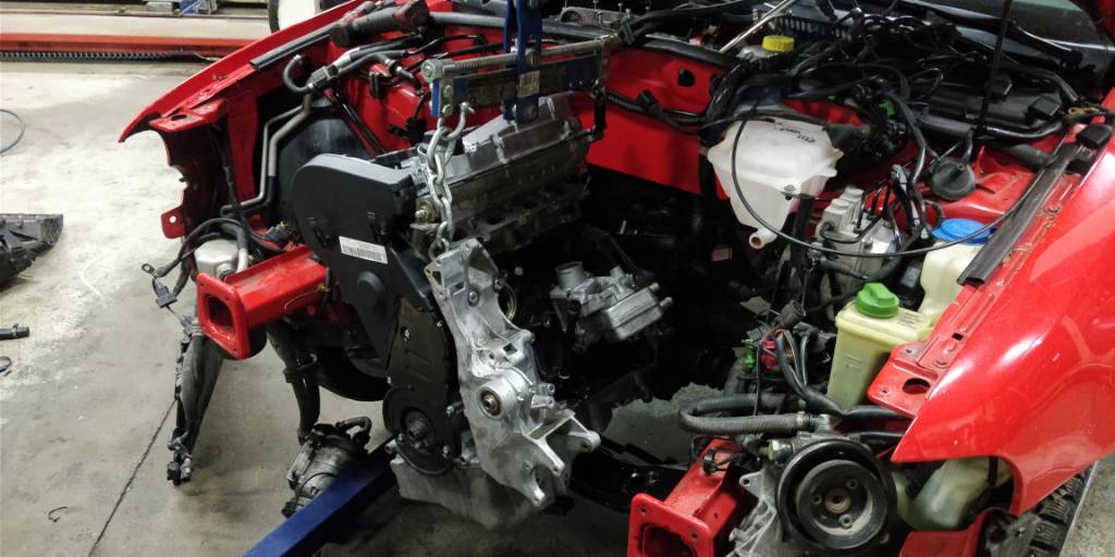 Moottorin puolella olikin sitten ongelmia aivan riittävästi, jotka ehkä olisi voinut ratkaista jo etukäteen jos olisi tutkinut asioita. Ensimmäisenä törmättiin ongelmaan, jossa vanhan kaasuläpän kiinnitysruuvit eivät piisanneet sähkökaasuläpän kiinnittämiseksi imusarjaan. Sopivia ruuveja ei ollut siihen hankittuna, eikä mistään enää siihen aikaan sopivia saanut, joten porattiin kaasuläpän reikiä 5mm syvemmäksi 11mm poranterällä, joten ruuvit piisasi läpi.