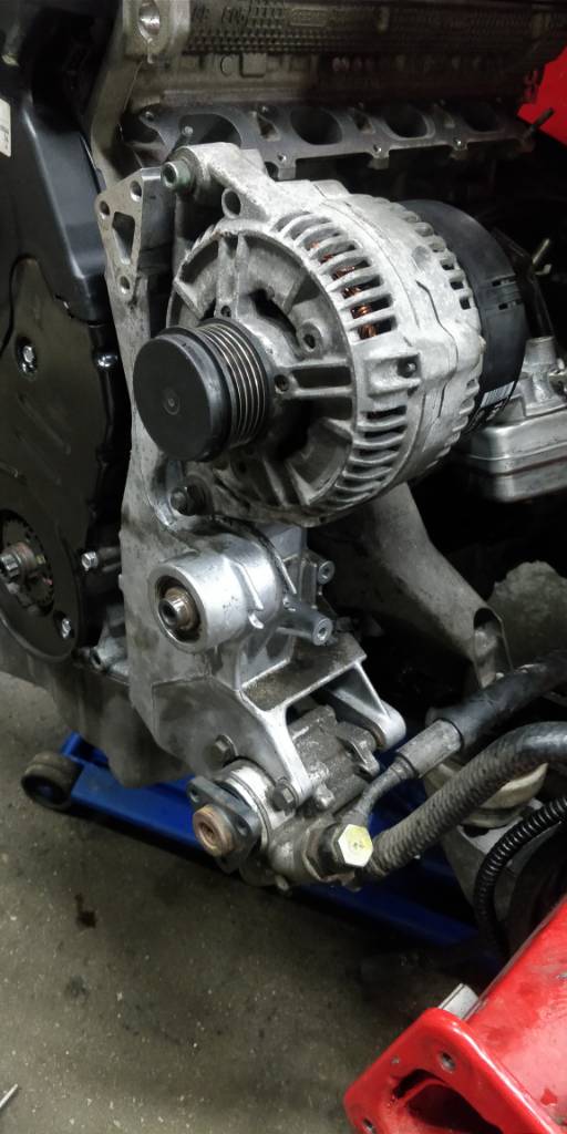 BFB laturi on ilmeisesti 4 pultin kiinnityksellä sivulta, kun AWT/AEB on 2 pultin kiinnityksellä keulastapäin. Ohjaustehostimen pumppu näyttäisi kuitenkin kaikissa olevan sama, joten se ei sinällään ole ongelma. Lisäksi AWT kannakkeesta löytyy myös paikka viskolle, joten sekin on plussaa tässä vaiheessa.
