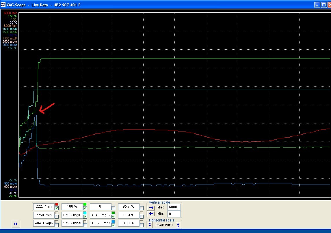 Potilas: vm 2002 (facelift) C5 2.5 TDI (AKE) avant quattro manuaalilla. Vaihdettiin talvirenkaat autoon. Sen jälkeen syttyi ESP-valo mittaristooin. Sammuu välillä ja sitten syttyy uudestaan. Kun valo palaa, niin ahtopaineet ei nouse ja kulku onnetonta. Moottoritiellä hädin tuskin kulkee satasta. Vika saattaa iskeä päälle moottorijarrutuksessakin ja parantua yht'äkkiä kesken kiihdytyksen. Mitään sääntöä sille en lyhyellä koeajolla keksinyt.