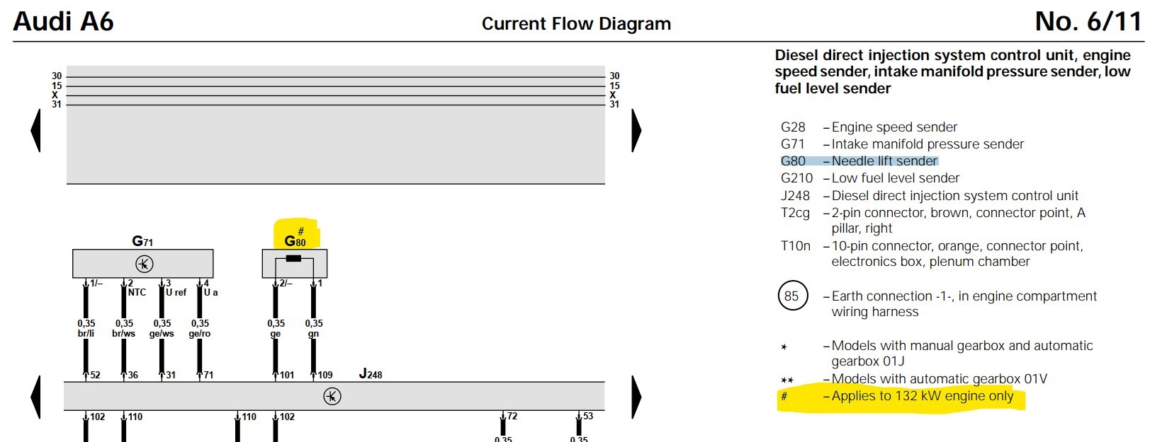 2.5 litre turbo-diesel engine (114 kW/121 kW/132 kW - 6-cylinder), engine codes AYM/BFC, BCZ, BDG/AKE, BAU, BDH