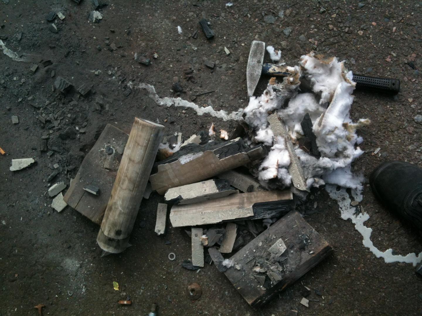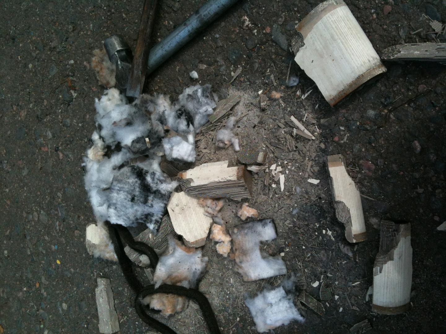 -Isolla ruuvvarilla tai vastaavalla hakkaa/vääntää kaiken tavaran pois