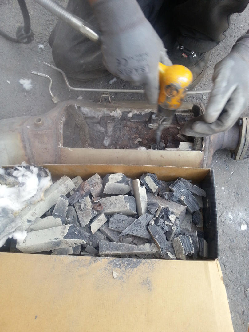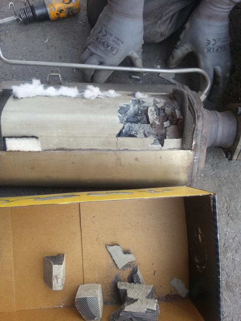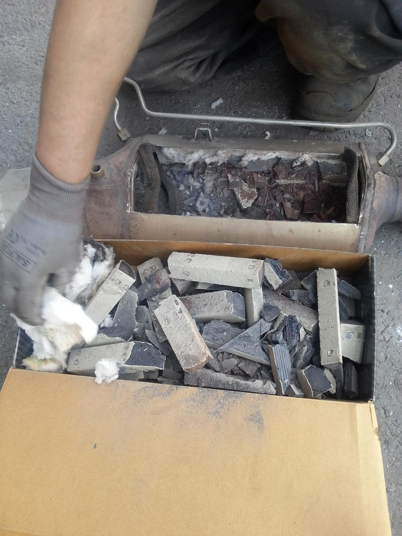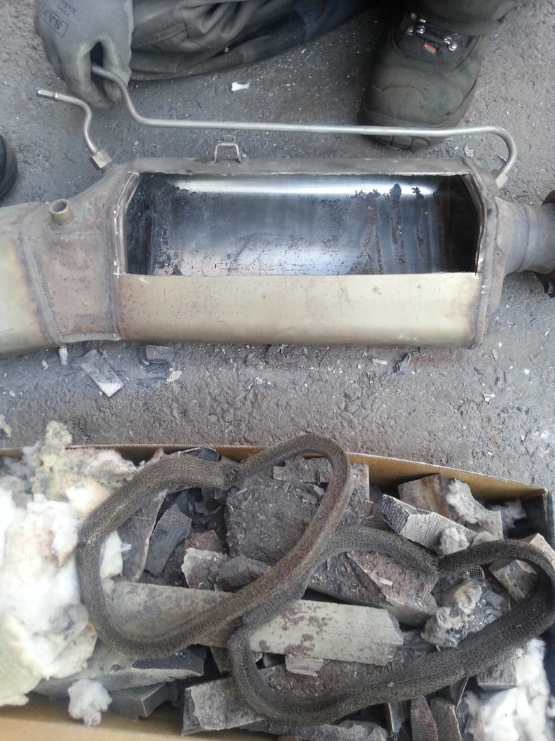 Katti ja DPF on yllättävän arvokasta romua mutta hinta saattaa olla parempi kun ne ei ole tuolleen murusina. Kun leikkaa riittävästi auki niin kennot voi nostella ehjänä pois. Katti kannattaa monesti jättää paikoilleen käryjä vähentämään.