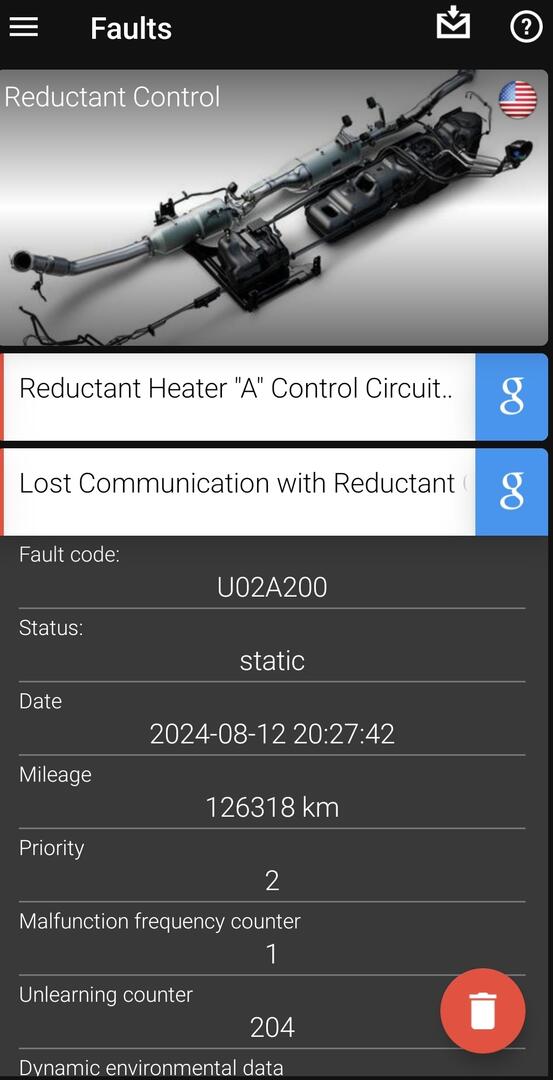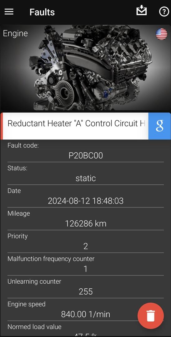 Vaihdettu käytetty ADBlue tankki pumppuineen vanhan tilalle. Nollattu vikamuistit vaan moottorinhäiriövalo syttyi jälleen seuraavana päivänä töistä lähtiessä. Vikakoodeja tällä kertaa vähemmän, mutta edelleen tuo staattinen vikakoodi: P20BC00 (Reductant heater 'A' Control Circuit High) tuli näkyviin. Mikäs nyt neuvoksi? Adblue ohjainlaitetta ei vielä vaihdettu, onko sen vuoro seuraavaksi?
