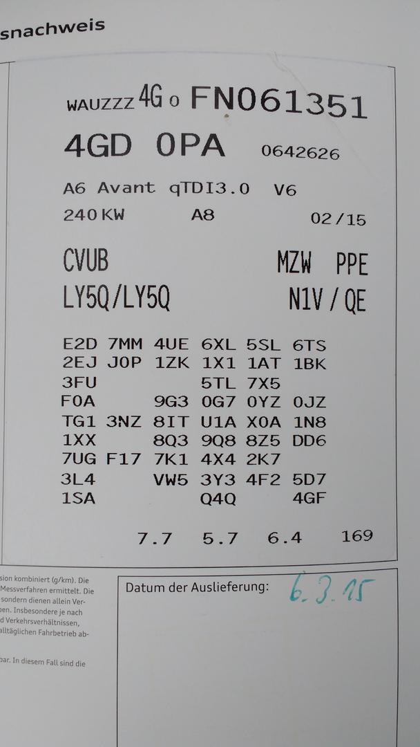 A7 alkoi ilmoittelemaan AdBluen lisäämisestä ja pyyntö ei poistunut vaikka ainetta lisäsikin. AdBlue fault -ilmoitusta tms. ei tullut mittaristoon, ainoastaan pyyntö lisätä nestettä. Vikakoodi kuitenkin löytyi, ja sen mukaan AdBlue-tankin sensori oli jumissa. Tarkemmin kun tutki, niin tasoanturi antoi tosiaan jatkuvasti samaa lukemaa. AdBlue -järjestelmä toimi muuten täysin normaalisti eli nestettä kului tankista jne.