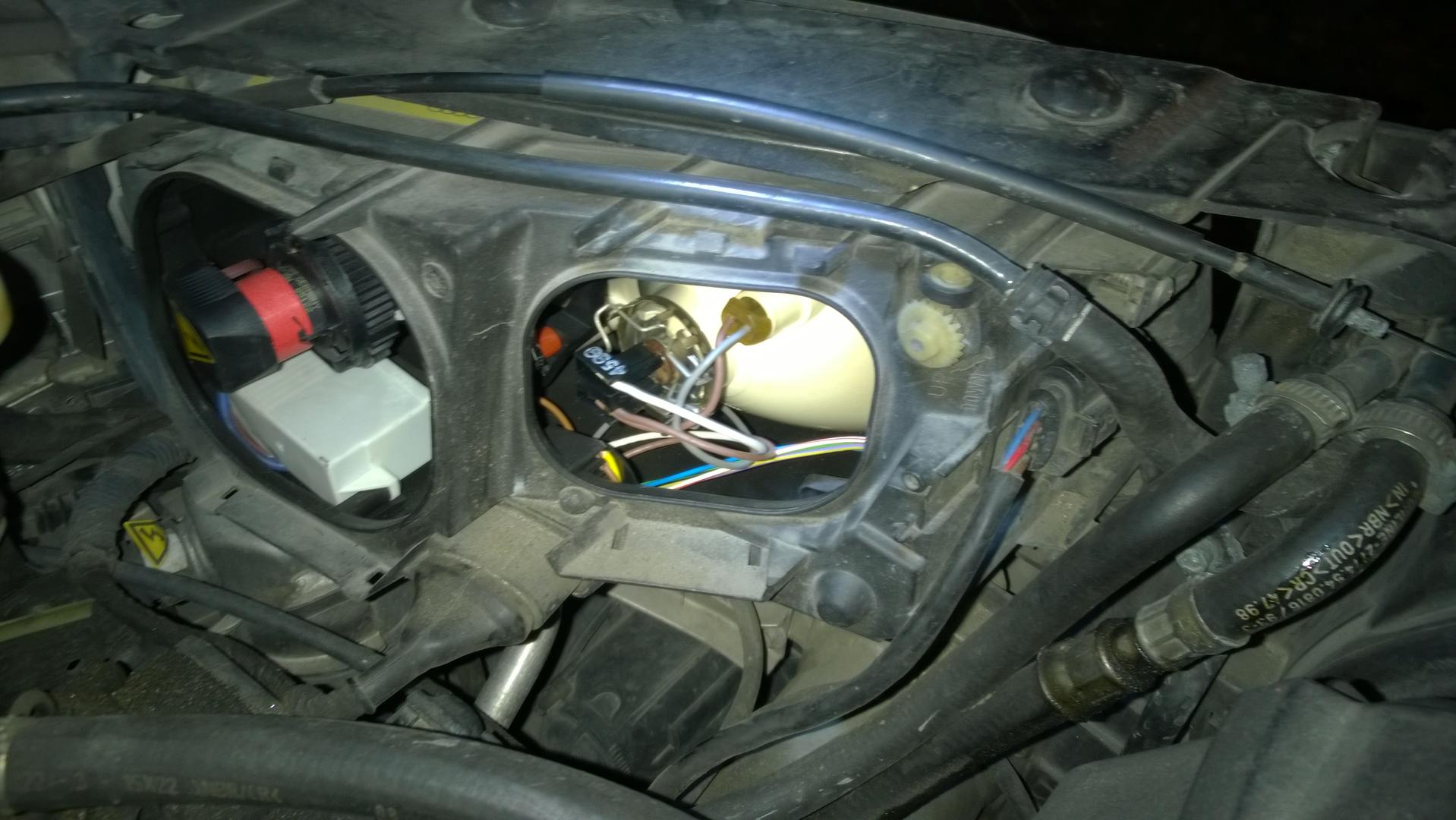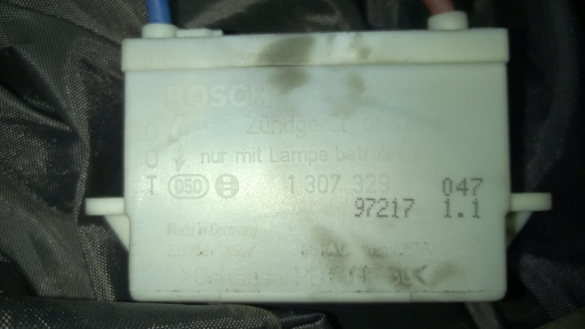 Onko arvoisa raati samaa mieltä: Vika on joko ballastissa (lokasuojan sisällä öljysäiliön takana), tai sen johdotuksissa? - Ja korjaava toimenpide on ajovalon sisäisten johdotusten eristeiden korjaaminen, ja joko ballastin, tai koko ballasti-sytytinsetin vaihto?