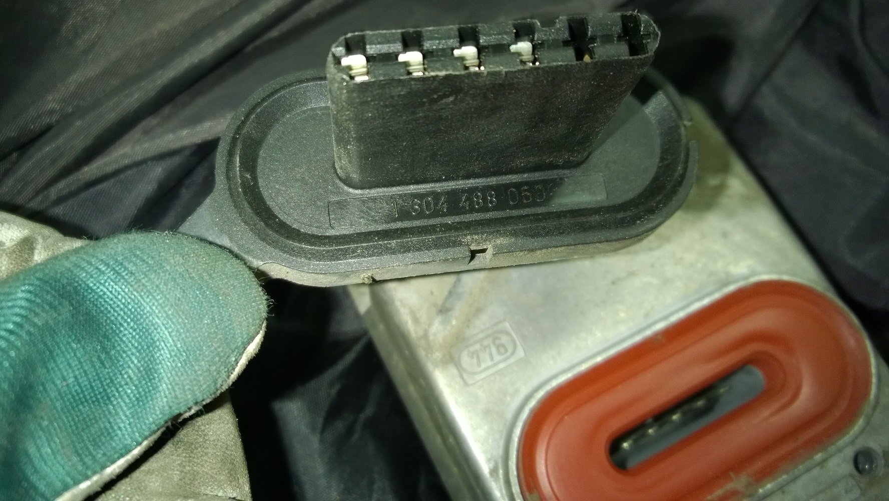 Autossani on muinaisen kolarin jäljiltä kaksi eri aikakauden umpiota: Vasen, joka on alkuperäinen (erillinen ballasti lokasuojan sisällä) ja oikea, joka on uudempaa mallia umpion sivuun kytketyllä ballastilla. Onneksi auton alkuperäinenkin oikeanpuoleinen ballasti löytyi vielä alkuperäiseltä paikaltaan, niin pääsin testaamaan vasenta umpiota sillä. - Sulakkeen #4 uusimisen jälkeen valo alkoi välittömästi toimimaan, joten vian juurisyy tuli varmistettua.