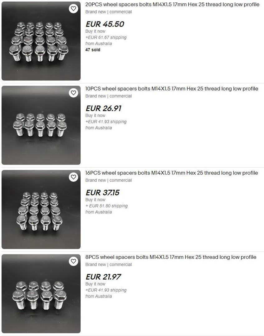Ebayssä olisi (lujuusluokka pykälää parempi vielä kuin alkuperäisissa) mutta postien takia melko suolainen hinta.