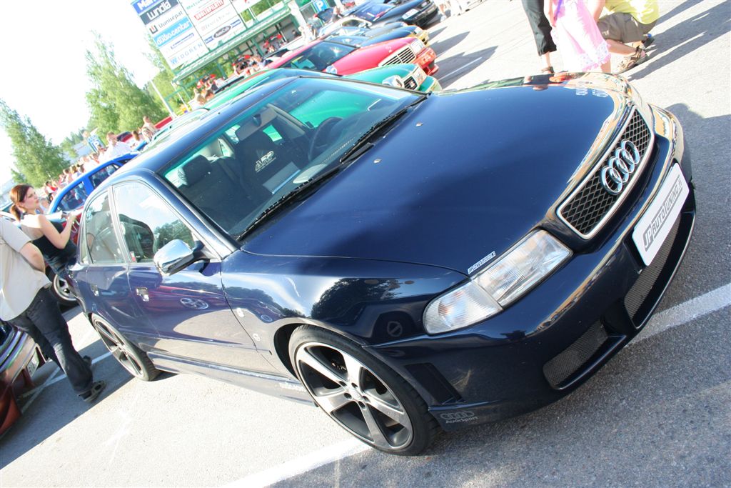 Tänään tuli kotiovelle sarja 225/40 18" renkaita sekä RS4 replica-vanteet (18 x 8). ET noissa on 35. Autossani (B5 S4 Avant -00) on 40mm madallus vuoden vanhoilla H&R:n jousilla. Edessä rengas mahtuu muuten kääntymään ja pyörimään vapaasti, mutta on erittäin lähellä helmakaaren yläosaa (renkaan kello 12). Välistä mahtuu juuri ja juuri etusormi. Muoveja voisi tietysti puukottaa, mutta rengas todennäköisesti silti osuu töyssyssä peltiin. ET45 olisi varmasti helpottanut ongelmaa, mutta sitten vanne olisi melko varmasti osunut jarrusatulaan (RS4 etujarrut). Pitänee vissiin korottaa 10-20mm uusilla jousilla, jotta tilanne paranee... Onko tiedossa hyviä myyjiä tai parempia ehdotuksia? Helmojen mankelointiin en viittis kuitenkaan lähteä.