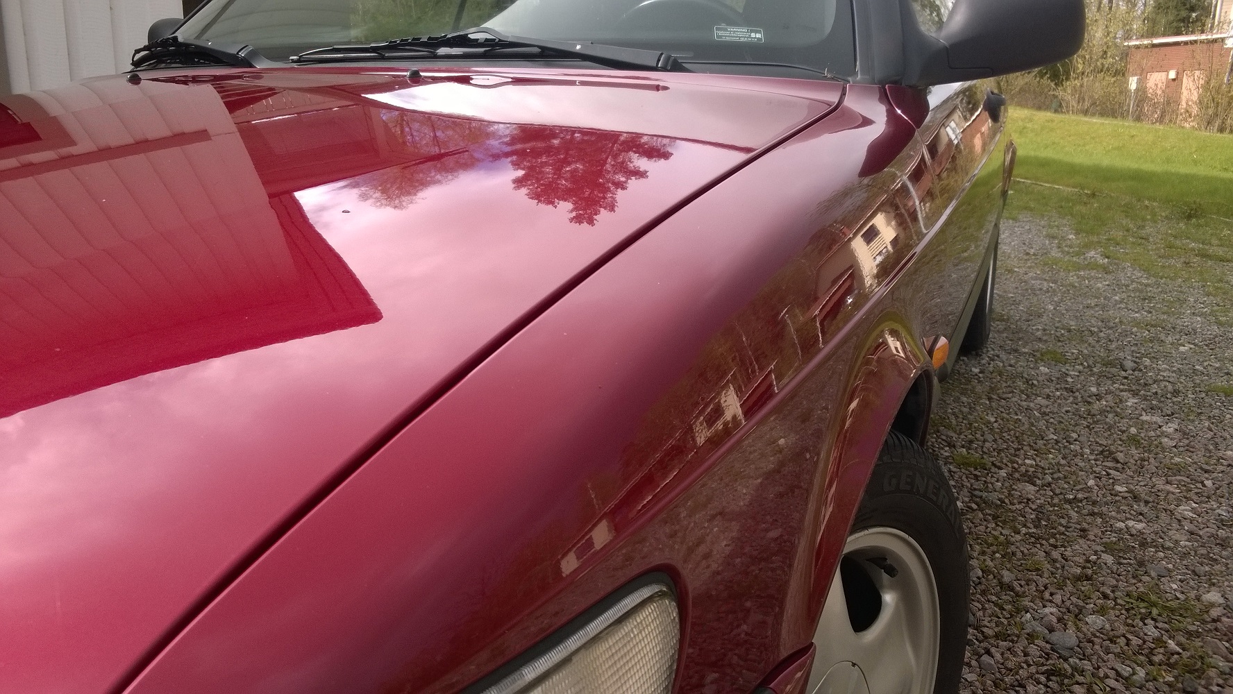 Profiilinmukainen vehje otti takaluukkuun sen verran osumaa, että sen voisi melkein oikaista. Kyseessä on rekisterikilven muovisen telineen vieressä oleva kohta takaluukusta. Painui sisään kämmenenkokoiselta alueelta noin sentin verran. Ei teräviä nurkkia painaumassa eikä maalipinnassa vikaa. Asuinpaikka Oulun lähimaasto.