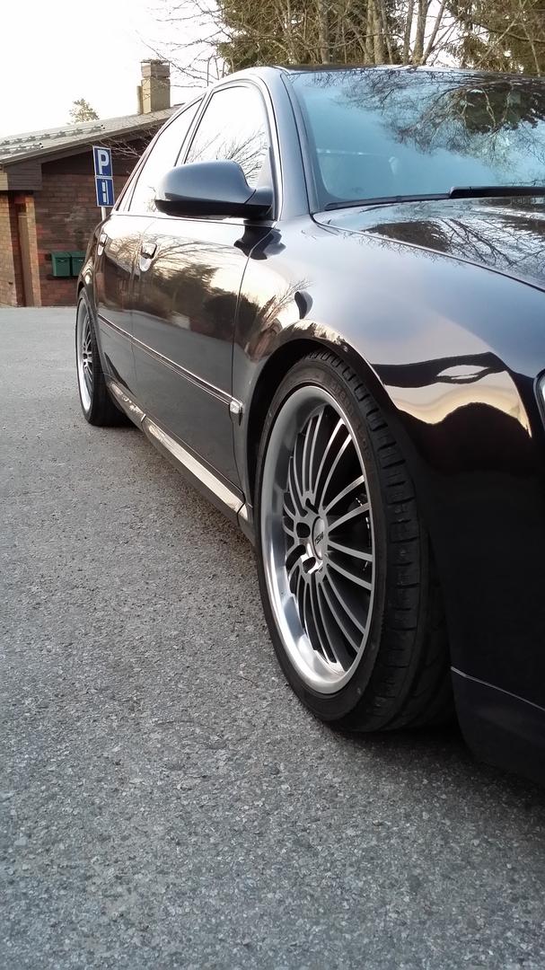 Tänään tuli vanteet 9,5x18 et:30 joka nurkkaan istuu kun nenä päähän! 225/40/18 rengastuksella.. Taakse vähän speiseriä ajattelin laittaa ni sitten täydellinen :)