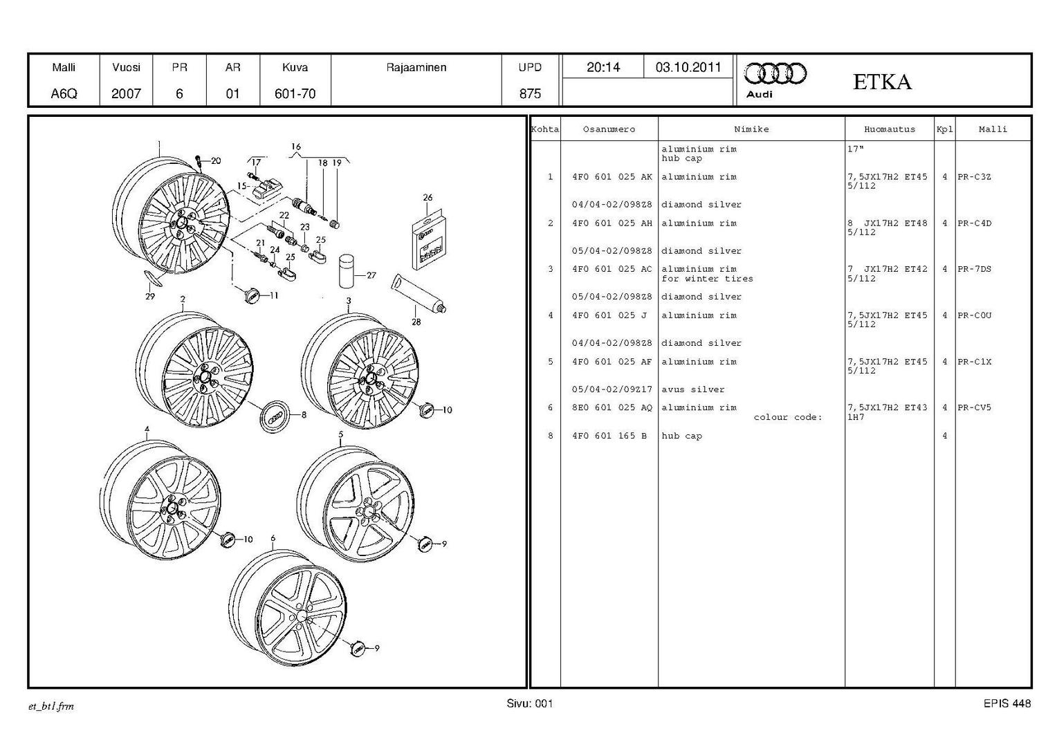 Olen itse kuolannut liitteenä olevia Audin OEM-vanteita (8,5x20" ET?), joita Saksassa on myyty A6:seen quattro GmbH:n kautta.