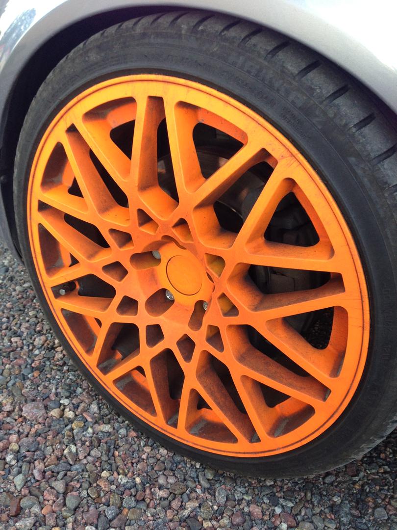 Kattelin Youtubesta Dipyourcarin vanteiden pesuvideon, joissa käytettiin jotain jenkkiläistä "Brake Dust Pro"-nimistä ainetta, joka myös muuttui violetiksi kun antoi vaikuttaa. Riitti tämän jälkeen pelkkä painepesurilla huuhtelu ja tämän jälkeen demonstroi vielä valkoisella liinalla pyyhkimällä, että jarrupöly oli poissa ja pinta ennallaan. Pitäisi yrittää löytää vastaavanlainen myrkky suomen markkinoilta, ajaisikohan tuo Sonax asian.