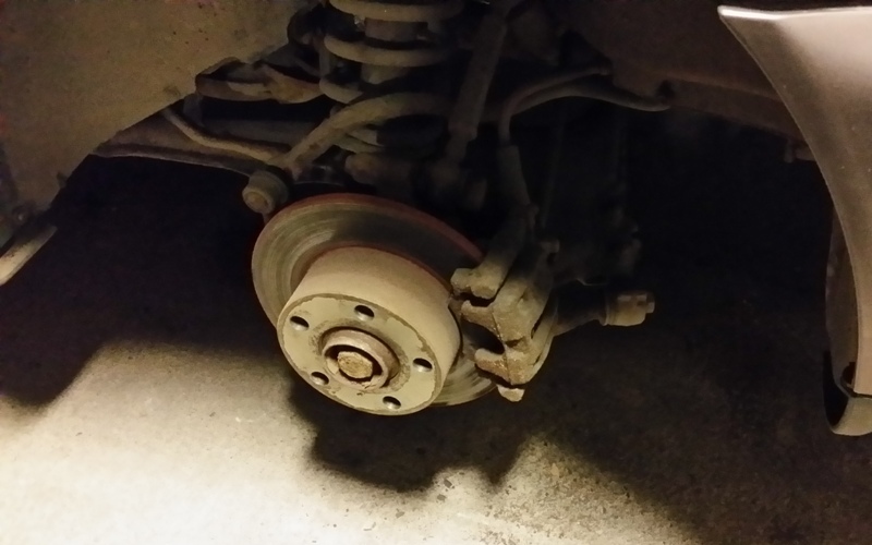 Ei tarvinut koskea jarrukilpeen tälläkään puolella. Se oli poistunut spontaanisti (eli yhtynyt happeen), ihan kuten kuljettajan puolellakin.