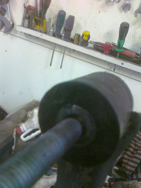 Jatketaas. Nyt on puslaan tehty "rasvataskut" ja laitettu vähän enemmin rasvaa kuin mitä mukana tuli. Pultin kireys ei enää vedä tukivartta ihan jumiin vaan nyt alkaa tuntua siltä kuin pitääkin. Luultavasti vielä ajossa vähän tekeytyy kun pääsee mukavasti liikkumaan. Tein puukkosahalla urat ja laitoin töhnää kunnolla ennenkuin tapin työnsin paikalleen.