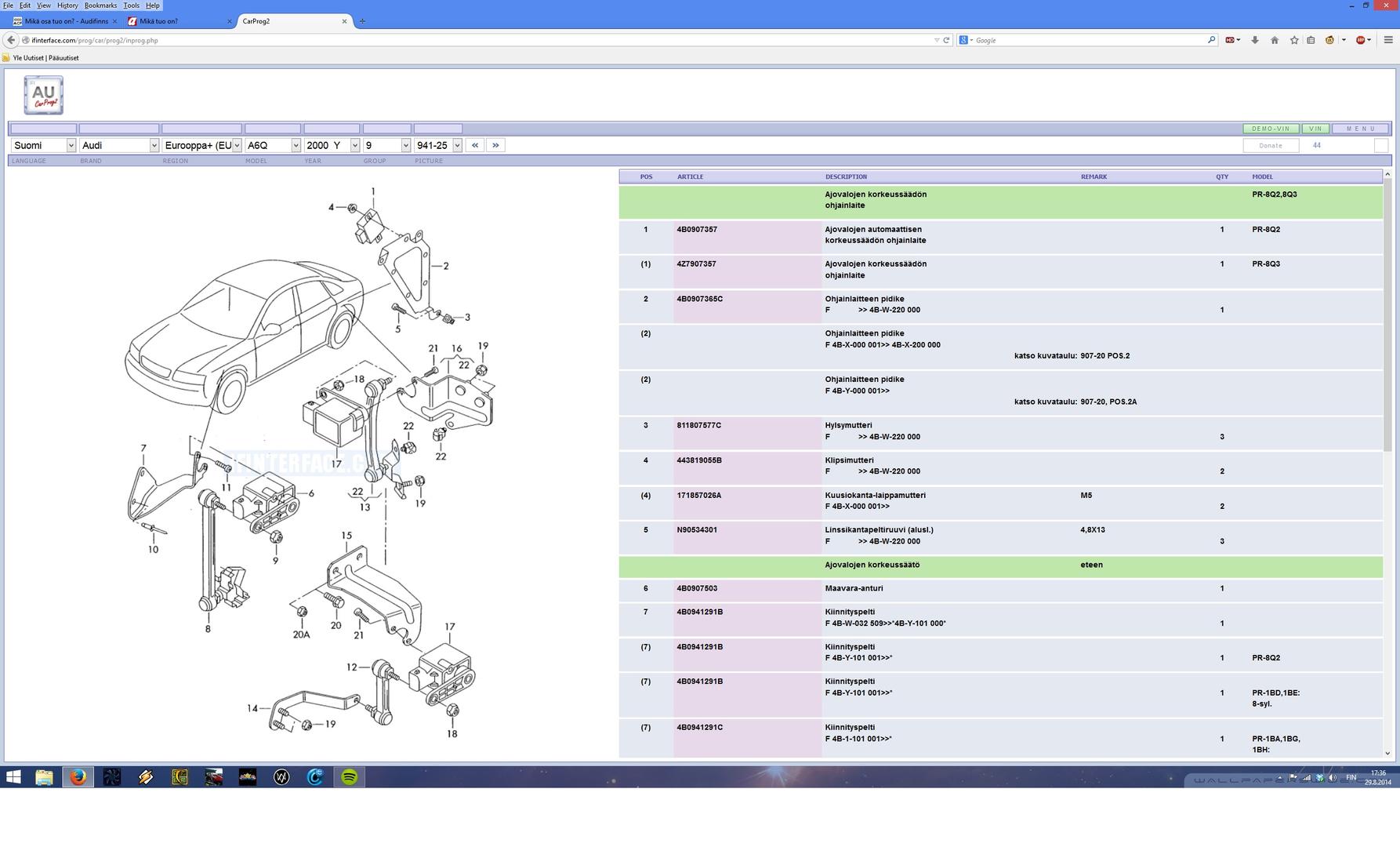 Auto on siis Audi A6 2,8 Quattro (automaatti) sedan, korimalli lienee 4B C5, vm. -98.