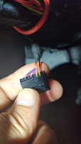 No niin. RHeadin viestin motivoimana päätin tutkia kytkennät vielä kerran. Ei muuta kuin XBB-boksi kiinni ja HAL-anturilla kokeileen josko heräte löytyisi. Tuo pinni 11 oli mykkä, niinkuin monet muutkin, mutta sitten tapahtui ihme. Ajovaloliittimen alaosassa oleva musta johto, jossa vihreä raita, herätti XBB:n eloon! Johto on niin alhaalla, etten näe mikä pinninumero se on.