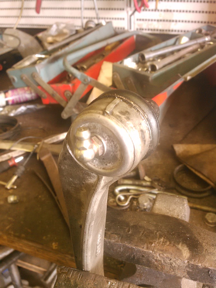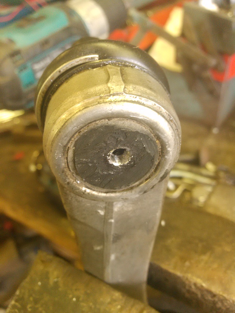 Kierteytyksen jälkeen asennetaan tukivarteen rasvanippa. Minun käyttämissäni rasvanipoissa kierre on sen verta pitkä, että joudun käyttämään rasvanipan alla aluslevyä. Muuten rasvanippa rajoittaa pallonivelen liikettä. Rasvanipat kannattaa suunnata niin, että niille on vapaa pääsy ilman suurempia purkamisia. Klik.