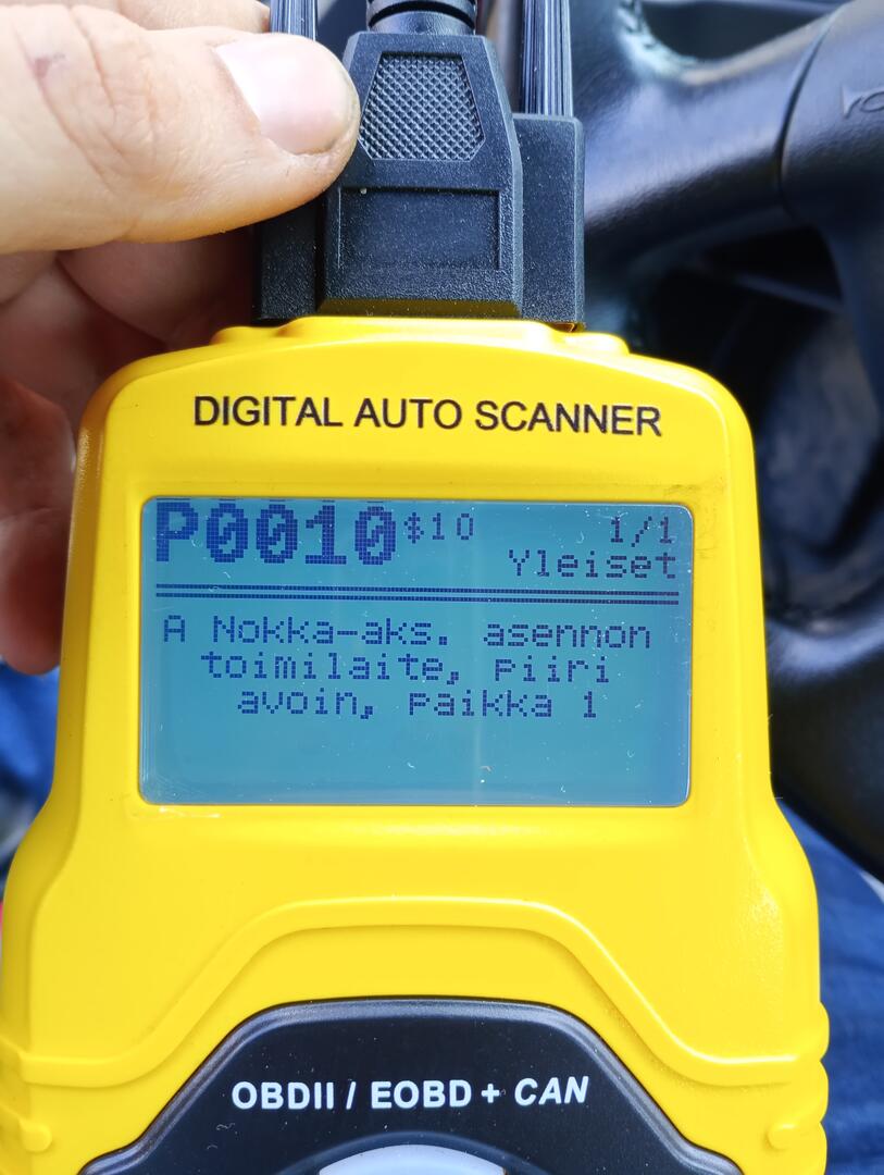 Auto saatiin käymään uudella anturilla, mutta moottorihäiriövaloa polttaa taas ja antaa samaa koodia P0010. Käynnissä ei tätä ei juurikaan huomaa, auto tuntuu pelaavan normaalisti. Mistäs lähdetään perkaamaan?
