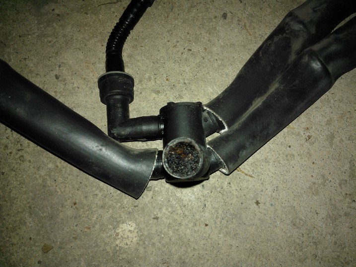 Ensihätään putsasin kaikki putket ja laitoin takaisin paikalleen. Y-putken tulppasin ja pannukakku saa luvan hengittää ulkoilmaan. Lohkon putki oli varmaan jäätänyt, kun se oli melkein tukossa öljy/vesi-möhnästä. Muut putket näytti ihan hyvälle.